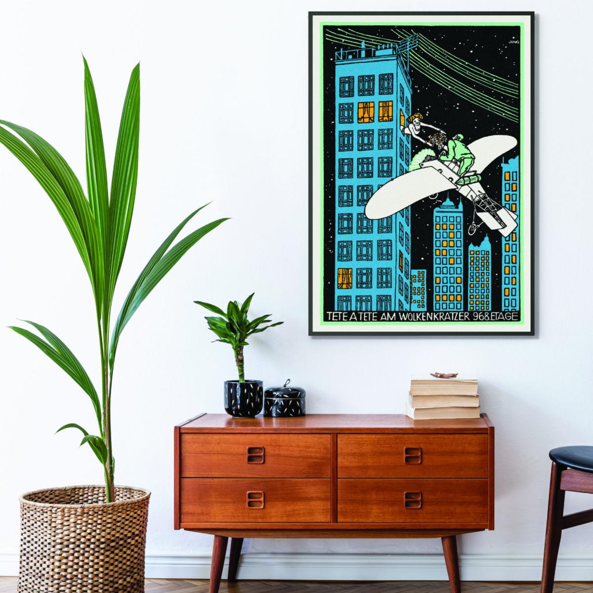 I love this piece because it combines a bold, modern graphic style with a playful, almost comic book-like vibrancy. The titles give it a street art, urban edge that works perfectly in contemporary or eclectic interiors. It’s ideal for city-centre apartments, creative spaces, or even a feature wall in a living room that benefits from an injection of colour and attitude. Practical styling tips include pairing it with minimalist furniture to let the artwork stand out, or offsetting it with other neon or graphic elements for a cohesive, modern look. Frame it simply, ideally with a light coloured border, to keep focus on the vivid design and ensure it’s a striking focal point.