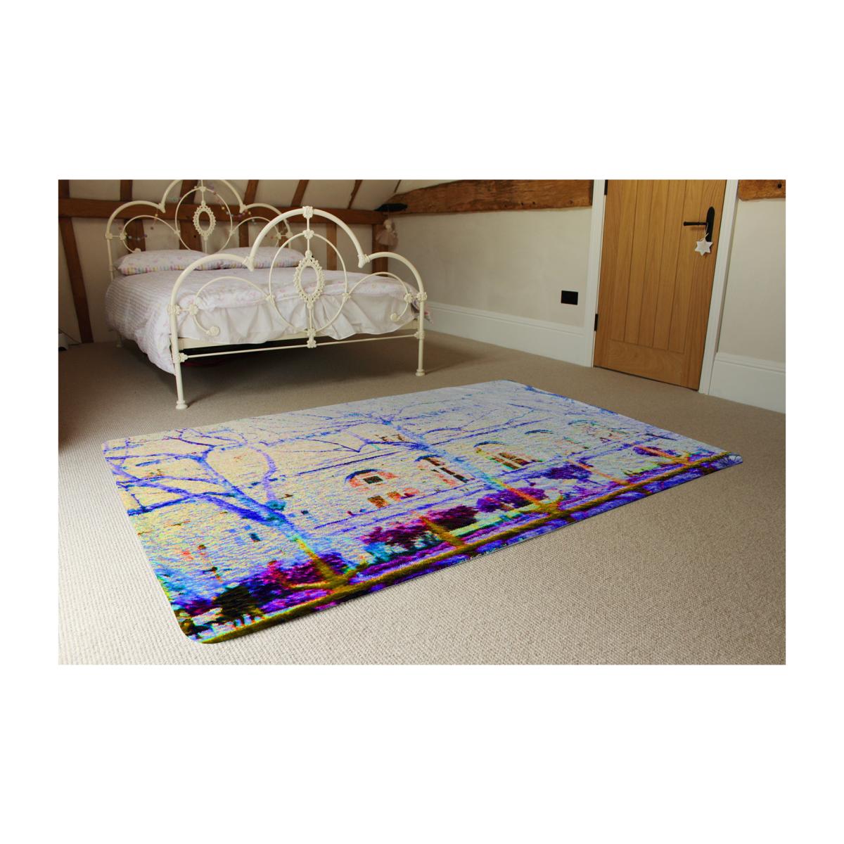 I love this rug because of its vibrant, playful design and bold colour palette, which can inject personality into both modern and eclectic interiors. The purple and blue tones make it perfect for adding a pop of colour in neutral spaces or complementing existing hues in a colourful scheme. It works particularly well in bedrooms or living areas where you want to create a relaxed yet lively atmosphere. For styling tips, consider pairing it with minimal furniture to let the pattern stand out, or layer with textured cushions and throws for a cosy, layered look. Given its size, it’s ideal for creating a focal point or anchoring a seating arrangement, making it versatile across different layouts.