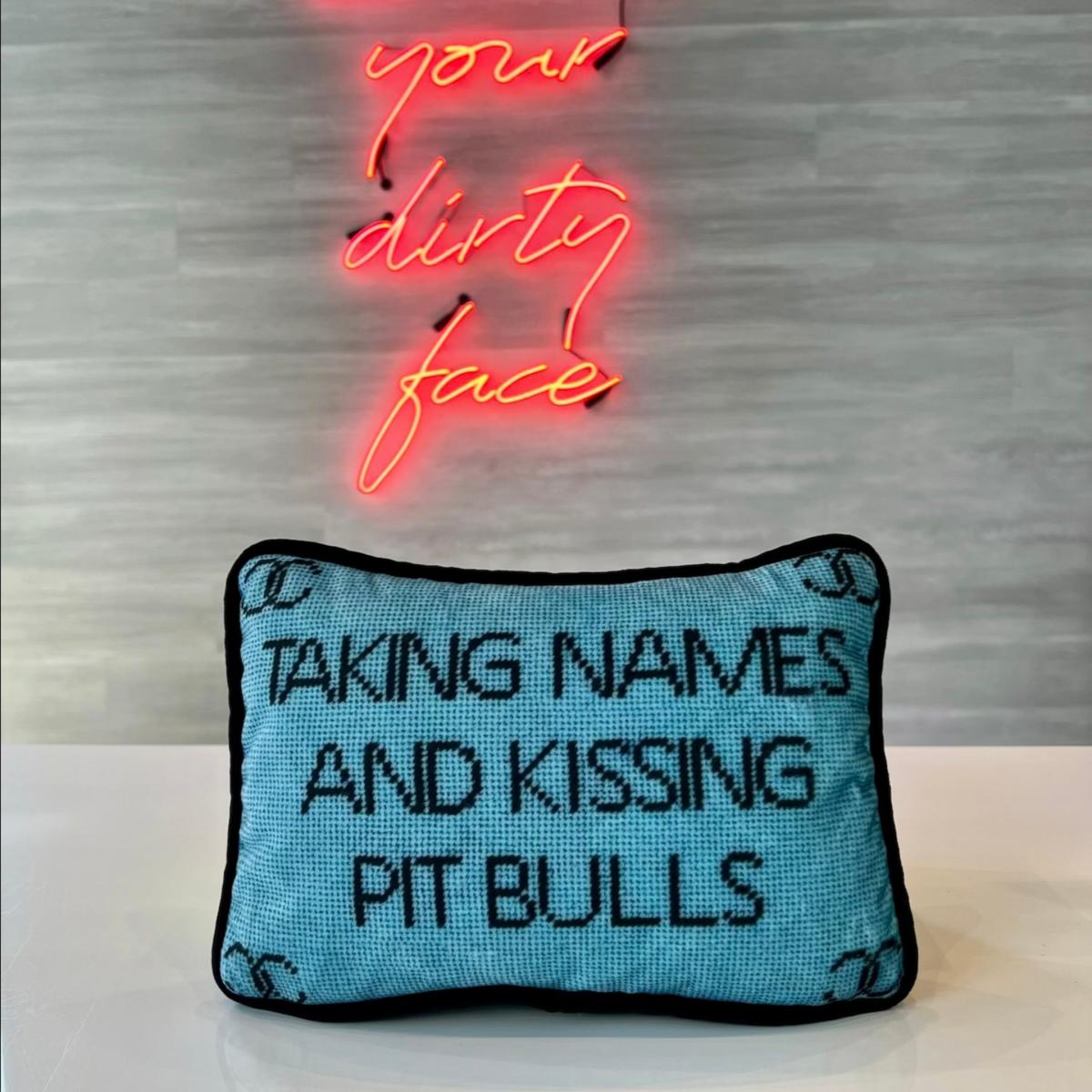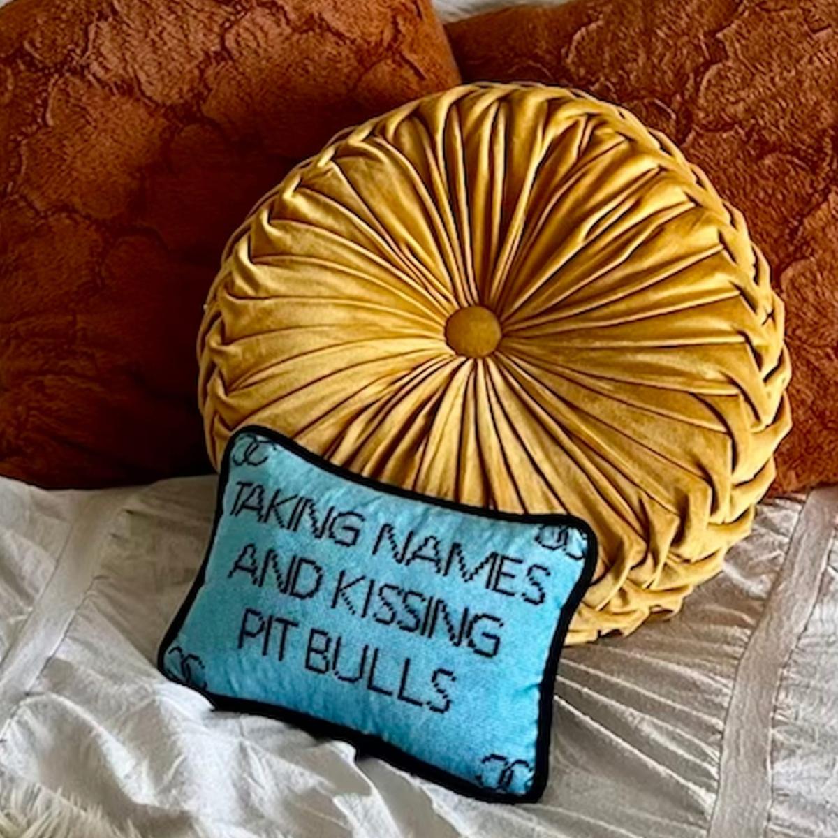 Blue Velvet "Taking Names And Kissing Pit Bulls" Down Pillow Mommani Threads