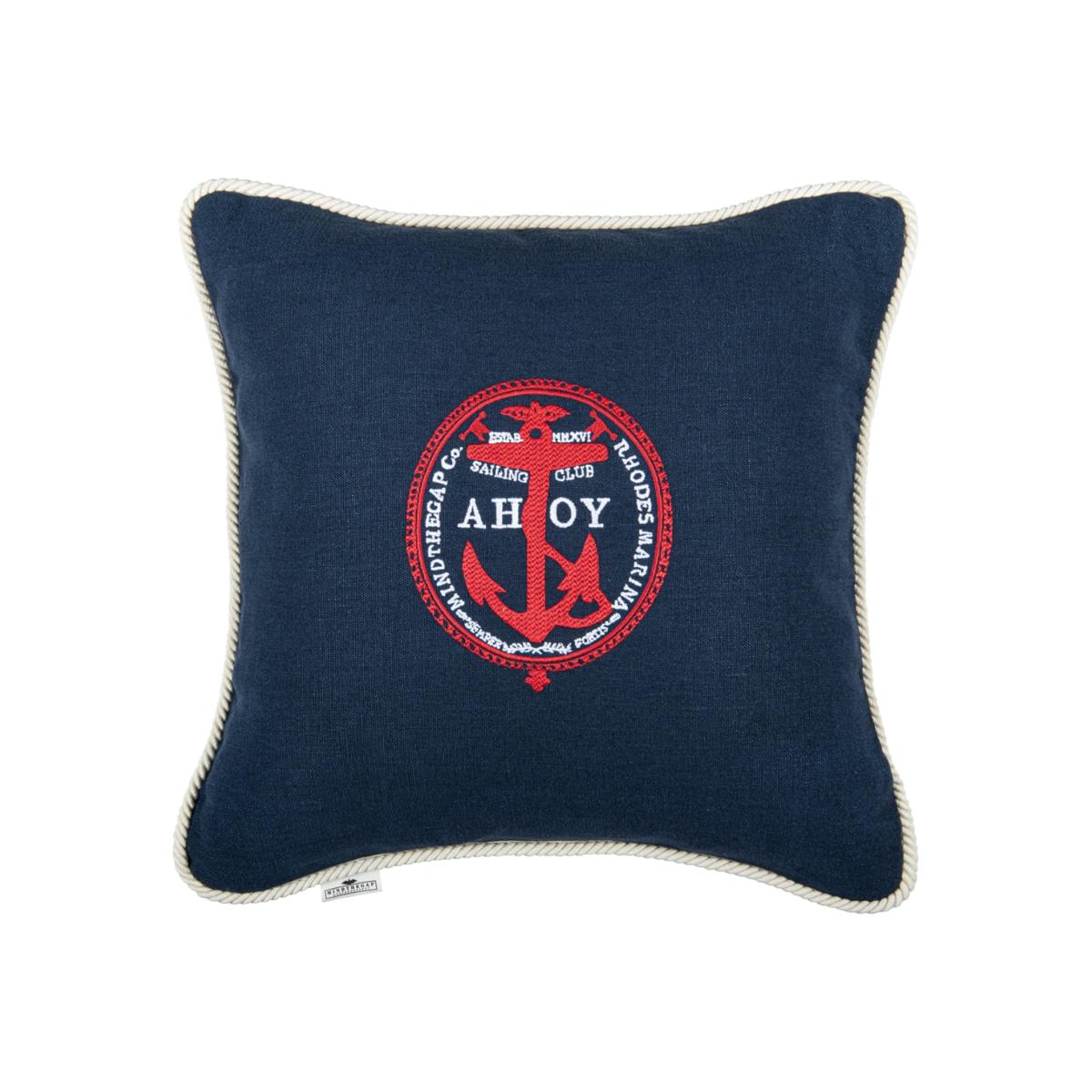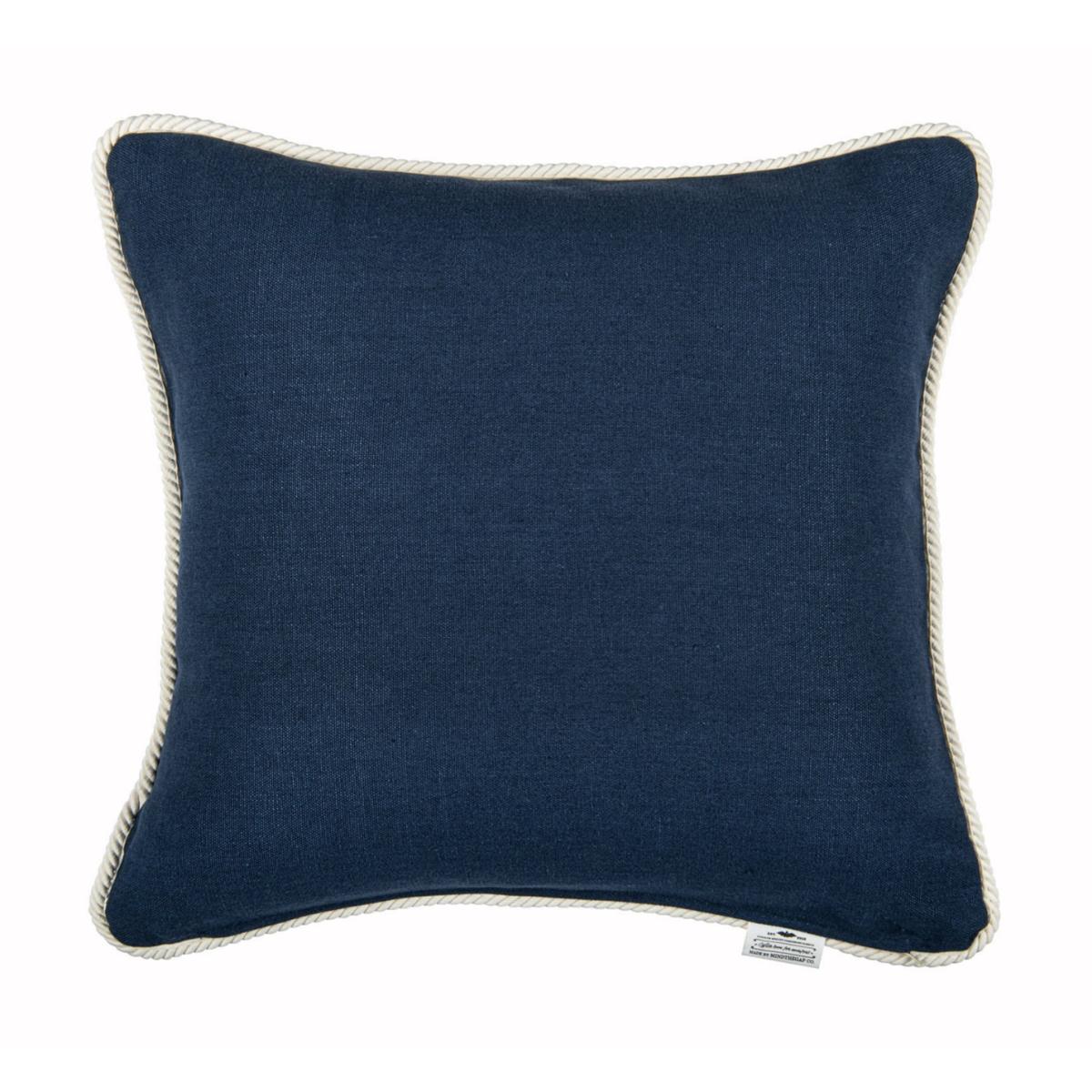 Cheering along the summer vibes from a holiday luxury yacht, the AHOY! Linen Cushion sets a bold statement in deep marine colours. With a large stylish crest embroidery placed over the elegant indigo blue linen, the cushion is finished with an off-white rope border for a marine visual effect. Comes with feather filling. MINDTHEGAP's distinctive cushions show beautiful patterns and details of our fabrics. Made on heavy linen or cotton pile velvet, all cushions are printed in Romania by using traditional methods. To achieve a unique vintage effect and to get more softness, our linen cushions are stonewashed finished.