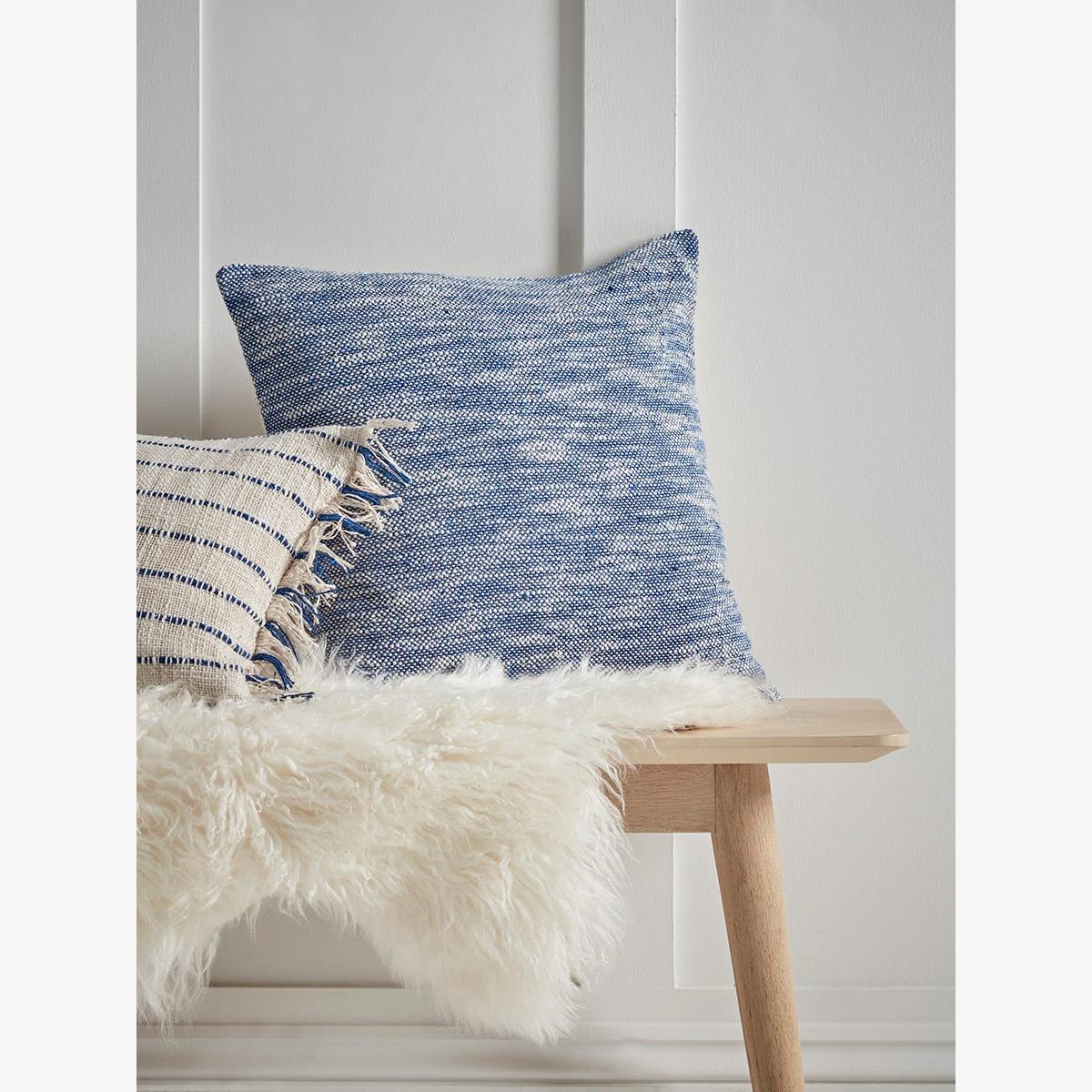 I love this blue woven cotton cushion for its versatile and timeless appeal. Its understated colour and texture make it an excellent choice for both modern and traditional interiors, adding a touch of relaxed sophistication without overpowering the space. It works particularly well styled with neutral tones, natural woods, or layered with other textured cushions for a cozy, inviting look. Practical styling tips include pairing it with lighter or darker shades of blue, or mixing it with tactile textiles like linen or velvet to create depth. This cushion is perfect for sofas, armchairs, or even beds, providing comfort and style in a subtle, effortlessly chic way.
