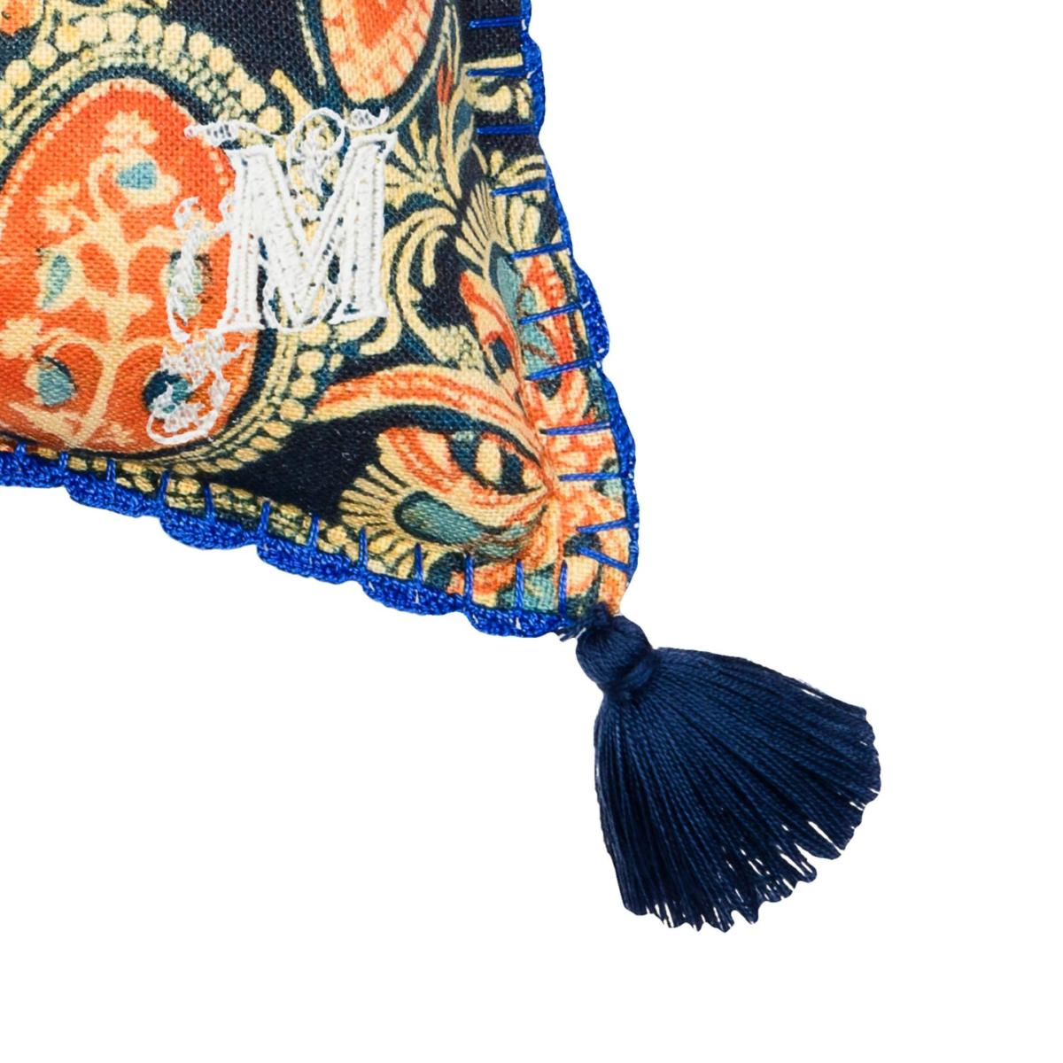 All fine details and nuances intensely rooted in the traditions and customs of our forebears can be retraced in this HEIRLOOM linen cushion. Hand-finished with blue scallop crochet trimming and blue cotton tassels on each corner, it also has an M letter monogram embroidered on the back and 100% duck feathers filling MINDTHEGAP's distinctive cushions show beautiful patterns and details of our fabrics. Made on heavy linen or cotton pile velvet, all cushions are printed in Romania by using traditional methods. To achieve a unique vintage effect and to get more softness, our linen cushions are stonewashed finished.