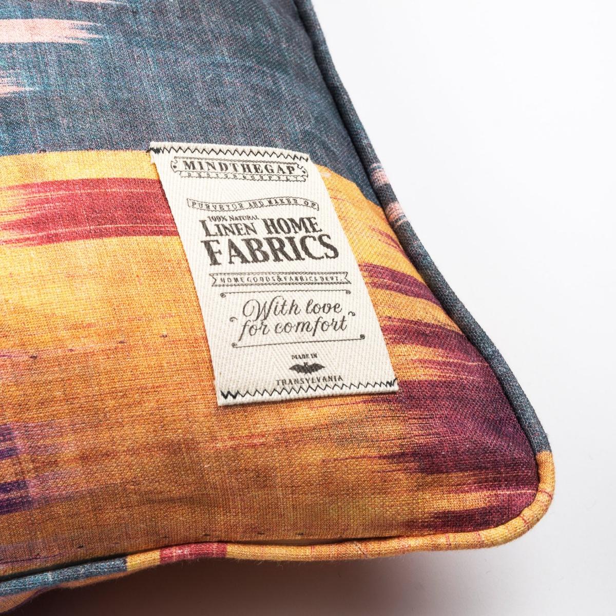 Blue / Yellow / Orange Patola Linen Square Cushion By Mindthegap