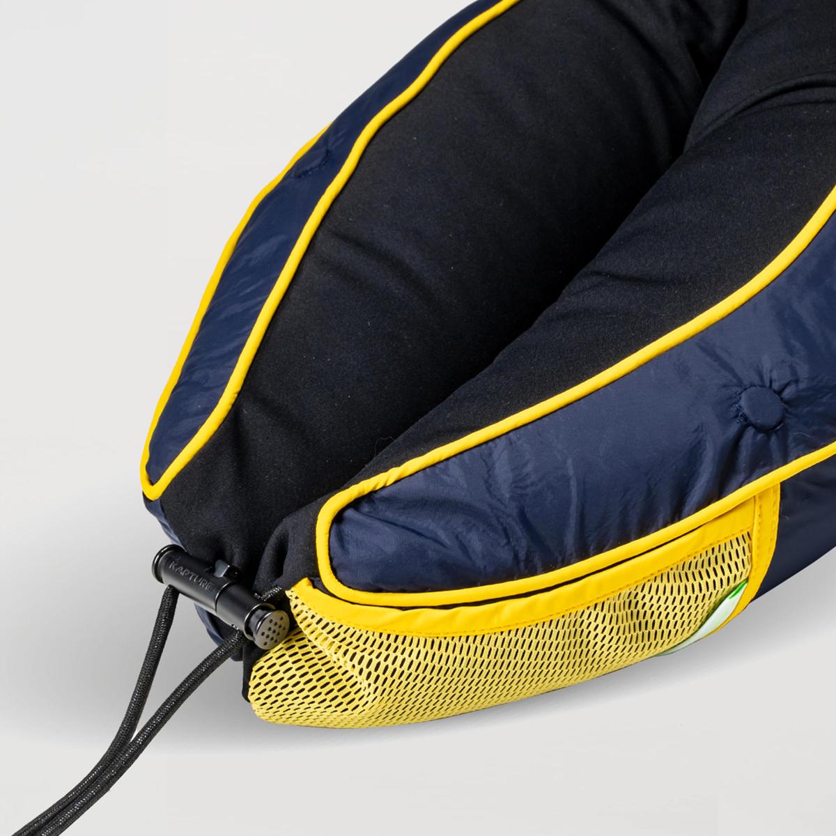 This travel pillow brings you a cozy sanctuary feel, this pillow harmonizes style with functionality, guaranteeing personalized comfort wherever your travels take you. Our ultra-light (330g) travel pillow is customizable, washable, and crafted from recycled nylon. Experience the cooling fabric, detachable hood, and convenient storage pocket—ideal for your adventures! Explore the rich array of colors offered by the Kapture Travel Pillow, designed to suit every preference and ensure you travel in both comfort and style. Select your preferred design and enhance your journey in luxurious comfort!