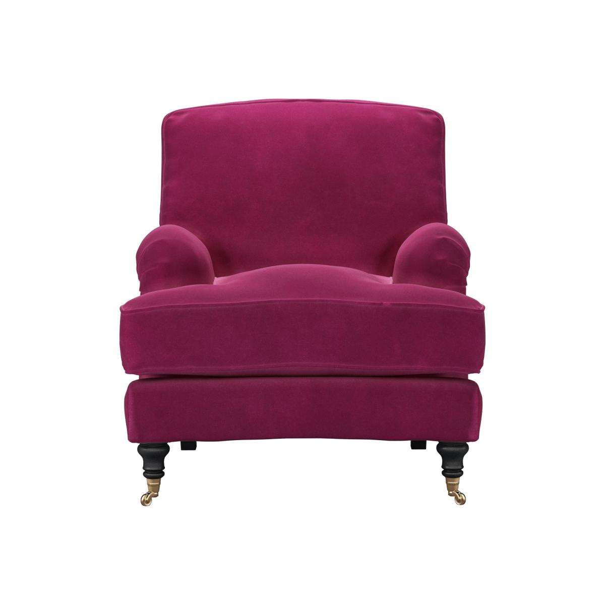I love this armchair because of its rich Persian Rose velvet, which adds a touch of luxury and warmth to any space. The colour is versatile enough to work in both classic and contemporary interiors, providing a vibrant contrast or complement to neutral palettes. It’s well-suited for cosy corners, reading nooks, or as a statement piece in living rooms. For styling, consider pairing it with brass accents, muted cushions, or textured throws to enhance its elegance. Keep the surrounding decor minimal if you want the chair to stand out, or mix with patterned textiles for a more eclectic look. This piece is an excellent choice for adding colour and personality without overwhelming the room.