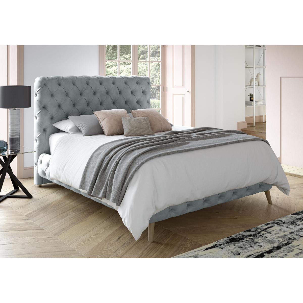 The Bluebell Bed Frame is a statement piece specially crafted for you. Taking its inspiration from the beautiful bluebell flower, it provides a profusion of colour for any space. An elegant design that is sure to stand the test of time, the Bluebell bed frame is the perfect frame for those craving style that does not compromise on comfort. Available in a variety of colours, the range is completely customisable, making the Bluebell bed frame the perfect frame for all shapes and sizes of bedroom. The Bluebell bed frame brings together extraordinary luxury and indulgent comfort. With velvet-feel fabric, various colours, and a range of leg finishes, you can make it uniquely yours. Why you'll love it. Statement piece for a one-of-a-kind bedroom. Available in 2 grades of soft velvet feel fabric in a choice of colours. Ultra-soft deep-buttoned headboard in a diamond pattern. Eye-catching tapered legs in Weathered Oak, chrome or walnut finish. Handcrafted in the UK. Exclusive at Furniture Village. What you need to know. Available in Double, King, and Super King sizes. Wooden slats. Mattress sold separately. Clean weekly using a soft brush or vacuum with the curtain attachment.