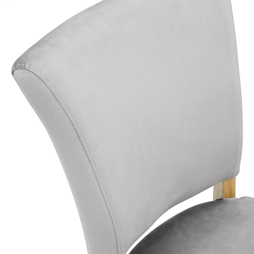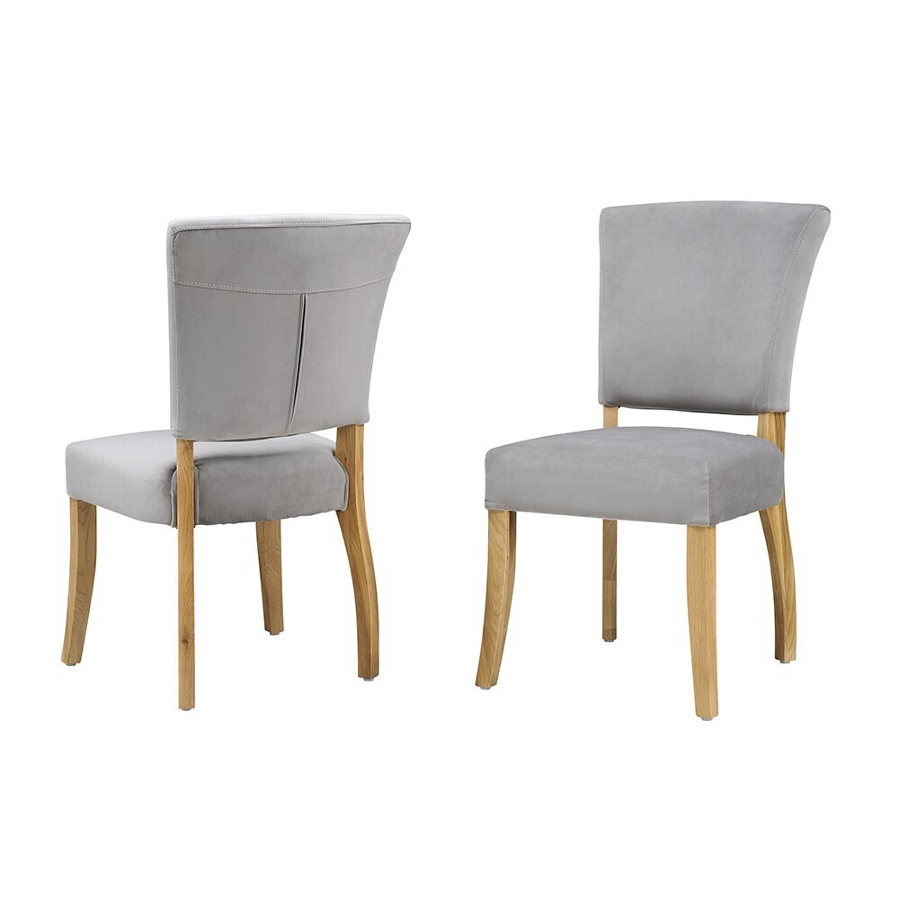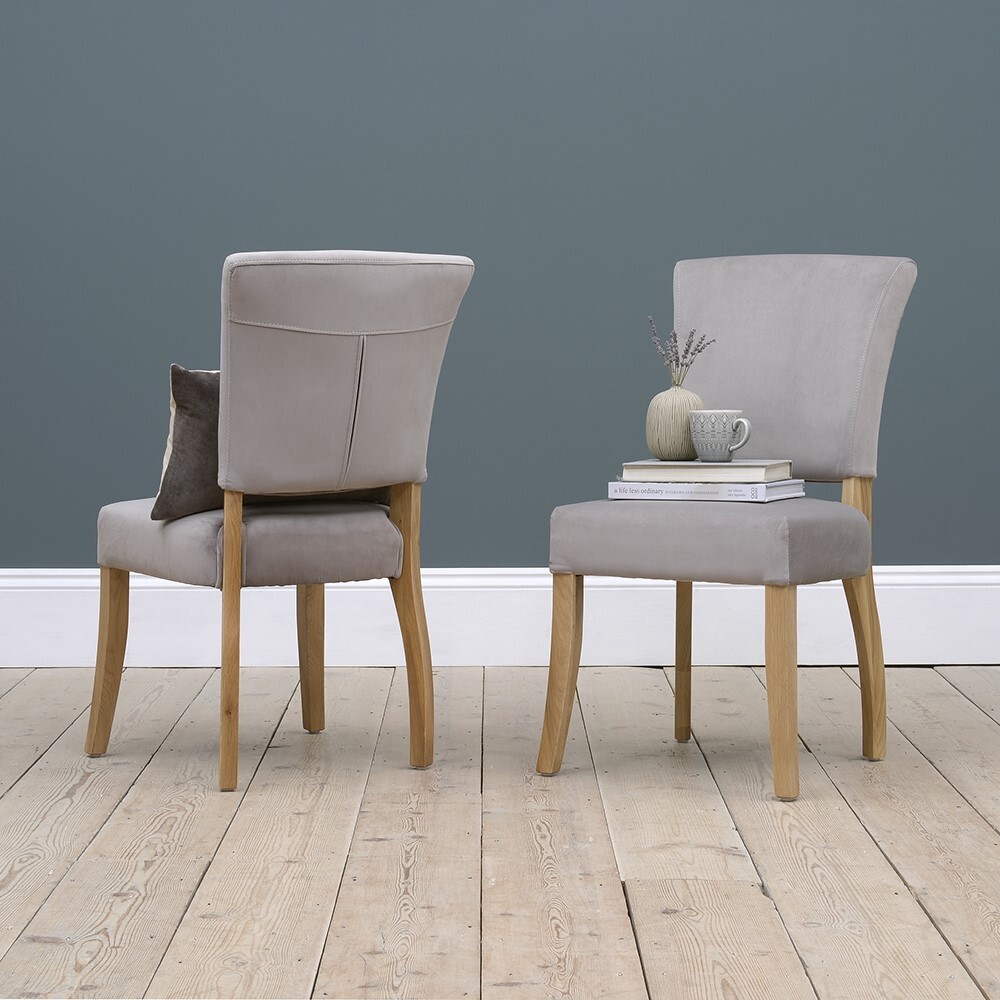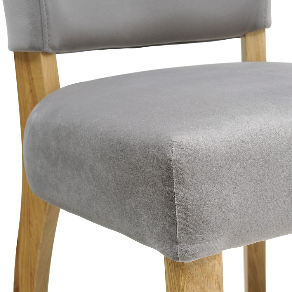 Dine in comfort when you sit down on this stunning dining chair. With its gently curved back and sumptuously deep cushioned seat it will offer the support you need to get you through even the longest of dinner parties. Finished in a beautiful soft grey, this chair makes the perfect statement on either end of your dining table or even to bring life to a dull hallway or dressing room. Standing firm on solid oak legs it will bring an air of sophistication and style kudos to any dining setting.