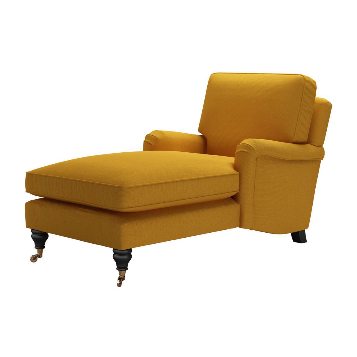 I love this bluebell chaise because of its bold mustard hue and the relaxed, inviting form perfect for a cosy corner or reading nook. The mango brushed linen cotton adds texture and a subtle sheen, making it versatile enough to complement both contemporary and eclectic interiors. It works really well in spaces with muted tones or natural materials, serving as a statement piece that introduces warmth and colour. For styling, consider pairing it with a selection of patterned cushions or a soft throw to keep things inviting, and place it alongside a side table and a floor lamp for functionality. Its classic yet playful design makes it a flexible addition that can anchor a lounge or bedroom scheme effortlessly.