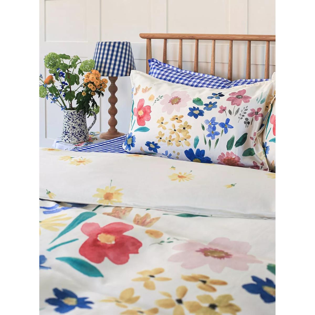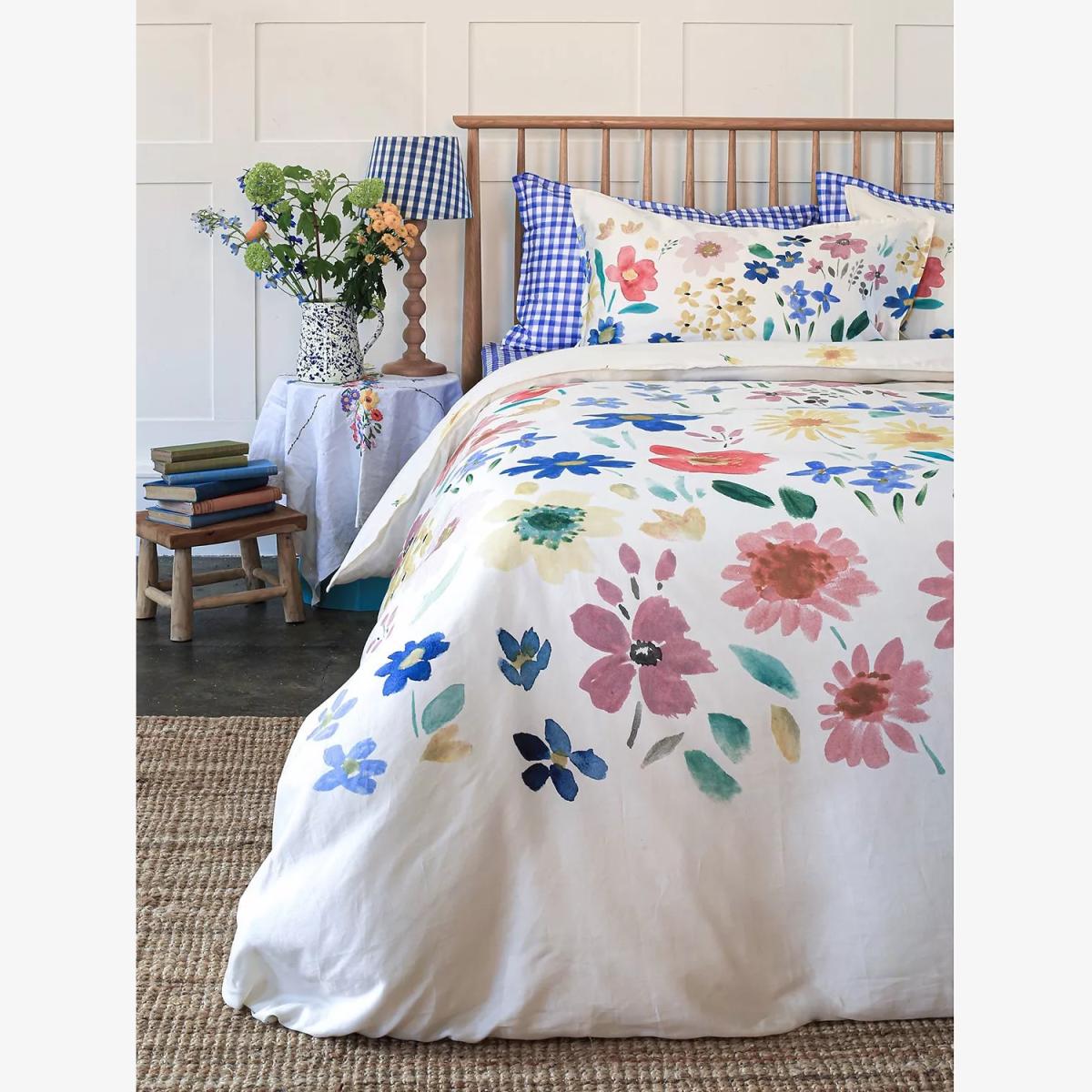 The Ally design features beautiful big blooms, with painterly cosmos and forget-me-nots, set against a cream base and dancing daisy reverse. This timeless floral design has been printed on to a high quality 300 thread count 100% cotton soft touch sateen. Each bluebellgray bedding design begins as an original watercolour painting and is created in our Scottish print studio. The single set comes with one standard pillowcase, while the double, king and super king sets come with two standard pillowcases. Bedding sizes To fit duvet/pillow size (cm) Standard pillowcase, L75 x W50cm Single duvet cover, L200 x W135cm Double duvet cover, L200 x W200cm King duvet cover, L220 x W225cm Super king duvet cover, L220 x W260cm
