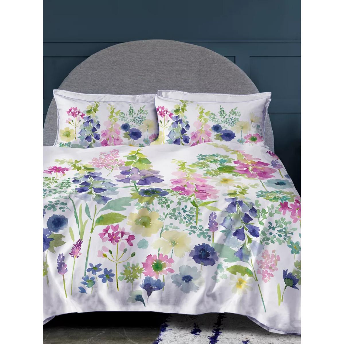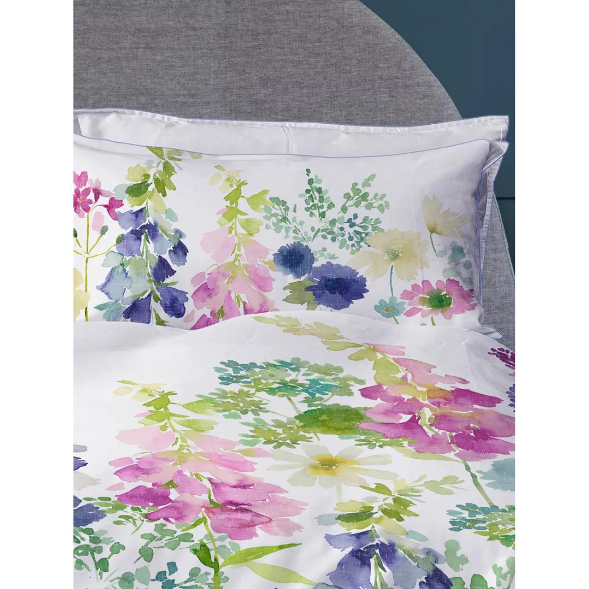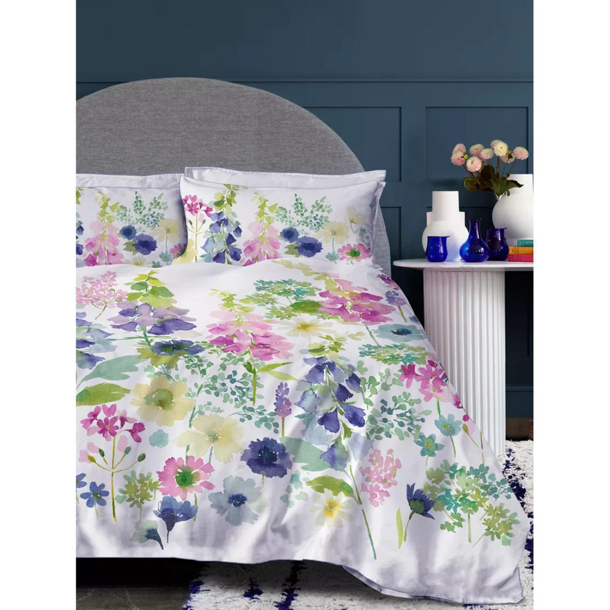 Capture the essence of a sunny spring morning with bluebellgray's Foxglove bed linen. Painterly, watercolour foxgloves entwined with delicate stems of foliage and cornflowers create an uplifting and joyful design. Featuring a fresh colour palette of blush pink, bright green and inky purple-blues. Made from 100% cotton for a cool, comfortable feel, to aid temperature regulation and help wick away moisture lost during sleep. Designed in Scotland bluebellgray is a celebration of vibrant colour and all things floral, recreated with love and care for your home. Each bluebellgray design is handpainted in the boutique brand's Scottish studio, before being transformed into gorgeous linens and textiles. The single set comes with one standard pillowcase, while the double, king and super king sets come with two standard pillowcases. Additional standard pillowcases are avaialable to buy separately. Have you thought about sheeting? Shop. Bedding sizes To fit duvet/pillow size (cm) Standard pillowcase, L75 x W50cm Single duvet cover, L200 x W135cm Double duvet cover, L200 x W200cm King duvet cover, L220 x W225cm Super king duvet cover, L220 x W260cm