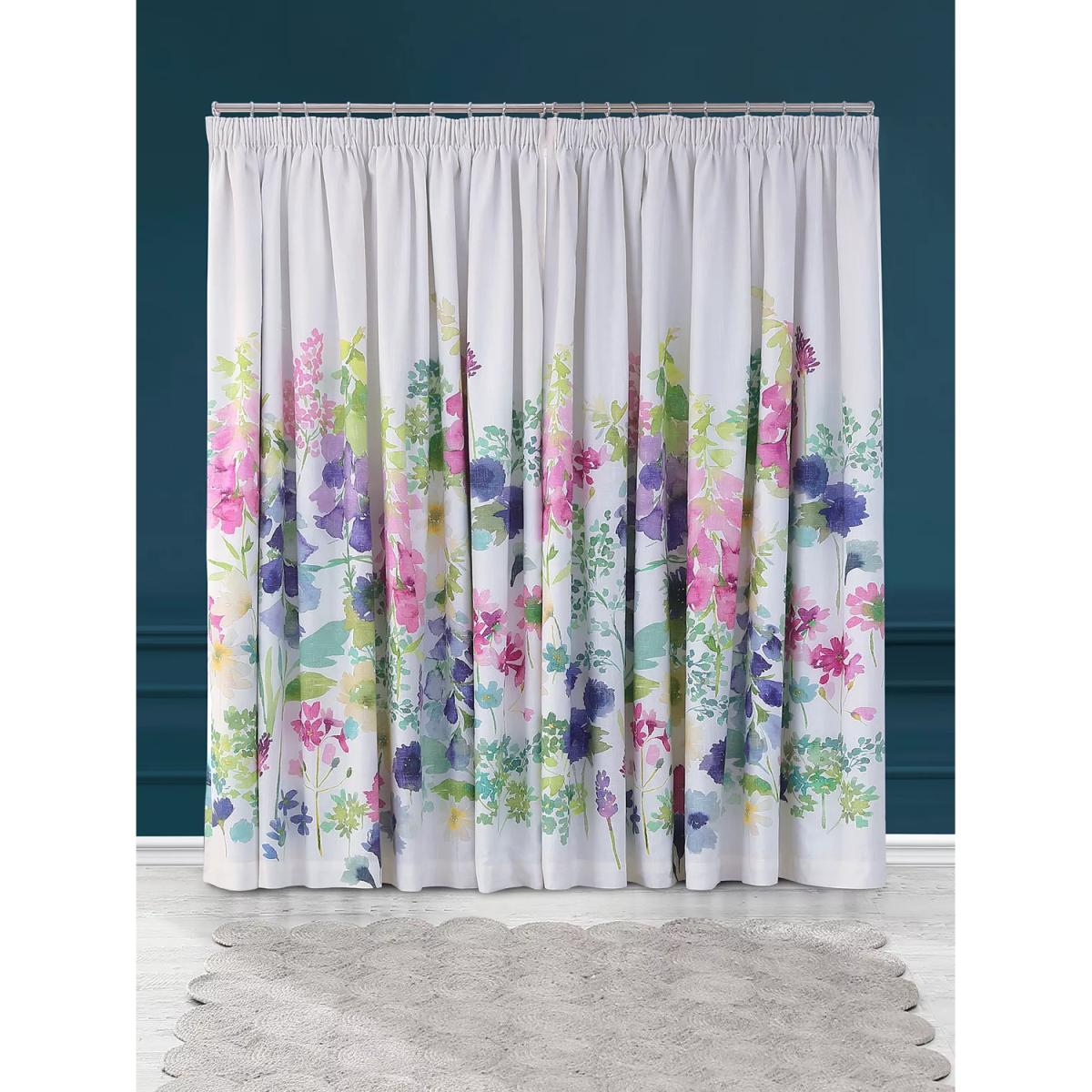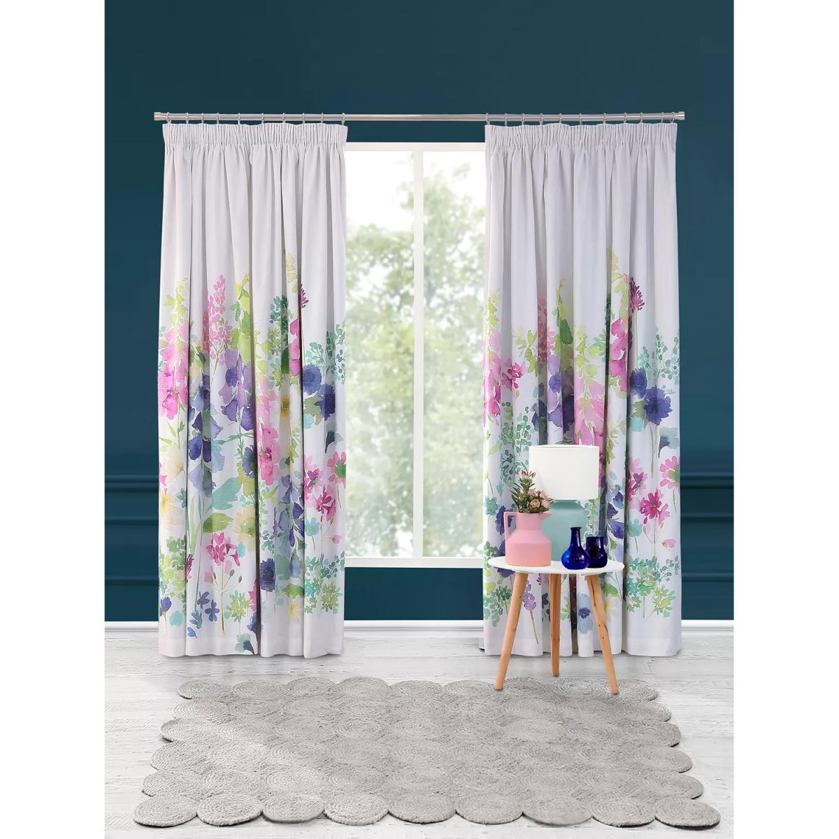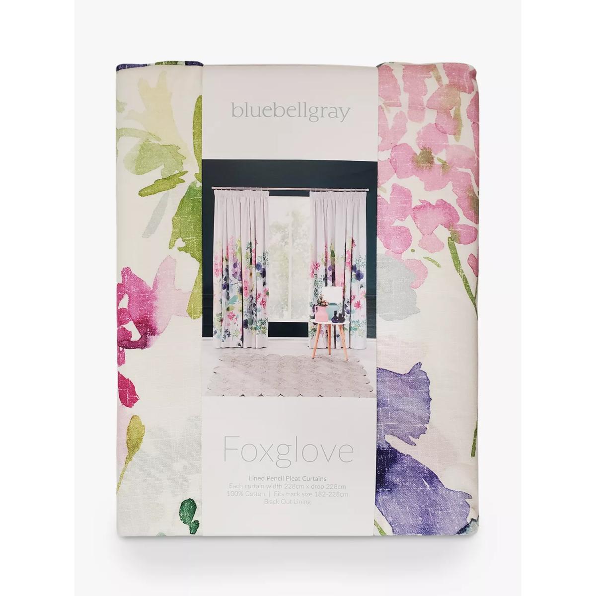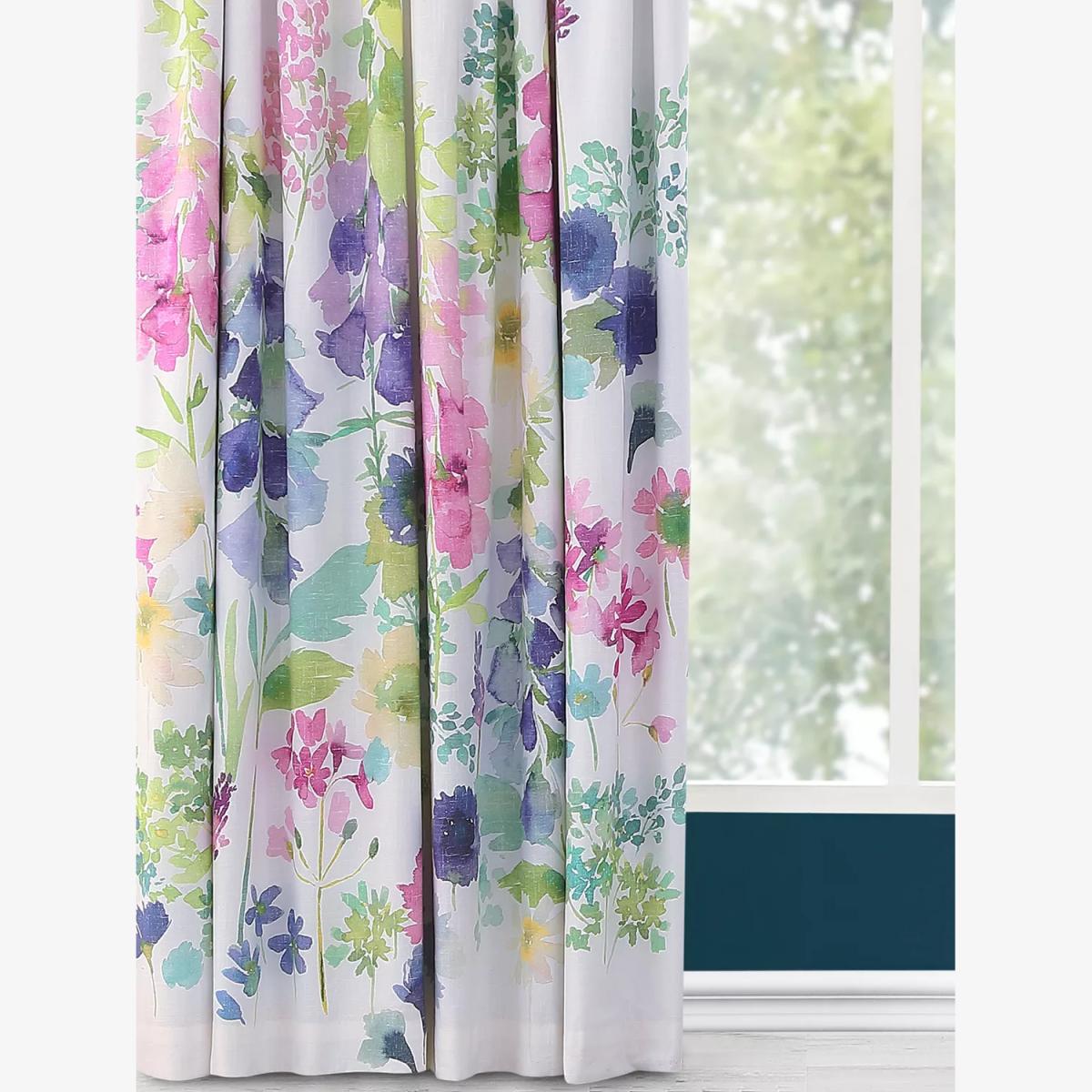 Digitally printed onto a cotton fabric for clarity and definition these blubellgray curtains feature a watercolour design of foxgloves, foliage and cornflowers. The blackout lining eliminates light and lends a full look to the curtains, improving the drape and enhancing the vibrancy of the pattern, whilst the pencil pleat heading creates a soft, gathered look. Choosing the right size These curtains can be hung with a pole or track using curtain hooks (not included). There are three hook positions on the heading, allowing you to choose how your curtains sit against the track or pole. For example, if you're using a track you may want to use the middle or lower row of hooks to cover the track, whereas if you're using a pole you may want to use the top row of hooks so the curtains hang below the rings. The specified drop is taken from the top row of hook pockets to the bottom edge of the curtain. The width stated indicates the size of one curtain panel when laid completely flat. This pack contains two panels, and the track/pole length we've recommended allows for the two panels to be gathered when the curtains are drawn. For a fuller look, increase the curtain width. One pair of 167cm width curtains will fit a curtain track/pole size 133-167cm One pair of 228cm width curtains will fit a curtain track/pole size 182-228cm Do you need a curtain pole and accessories? Shop them here.
