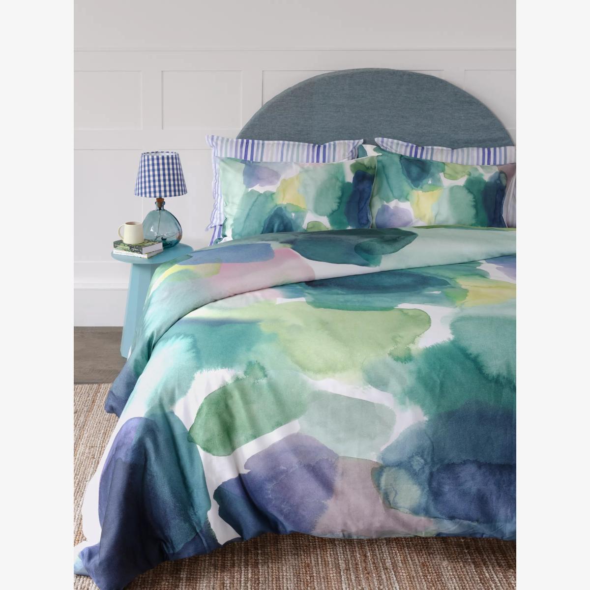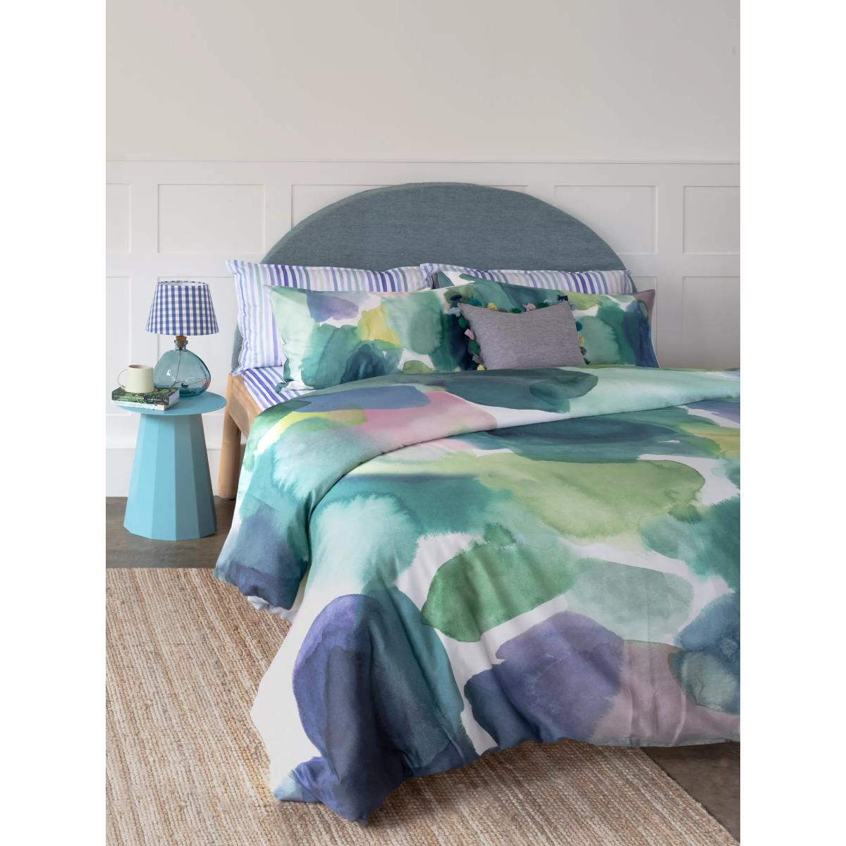 Enjoy a dreamy night's sleep in bluebellgray Lochaber bed linen. This beautiful abstract design has been printed on to a high quality 300 thread count 100% cotton soft touch sateen. The single set comes with one standard pillowcase, all other sizes come with two standard pillowcases. Designed in Scotland bluebellgray is a celebration of vibrant colour and all things floral, recreated with love and care for your home. Each bluebellgray design is handpainted in the boutique brand's Scottish studio, before being transformed into gorgeous linens and textiles. Bedding sizes To fit duvet/pillow size (cm) Standard pillowcase, L75 x W50cm Single duvet cover, L200 x W135cm Double duvet cover, L200 x W200cm King duvet cover, L220 x W225cm Super king duvet cover, L220 x W260cm Have you thought about sheeting? Shop here.
