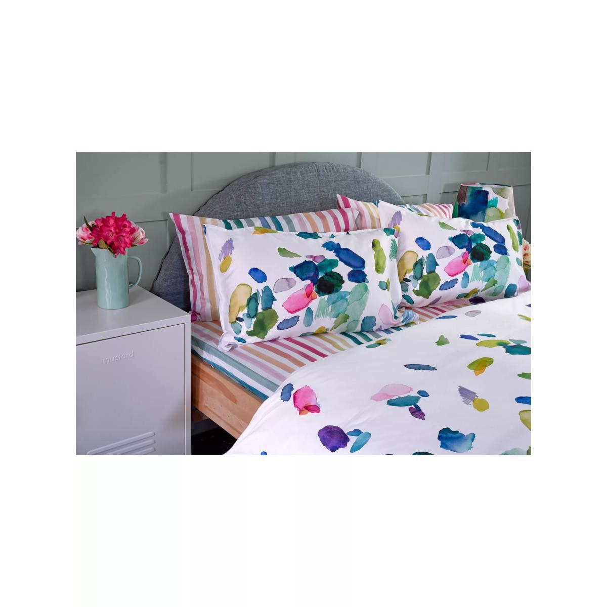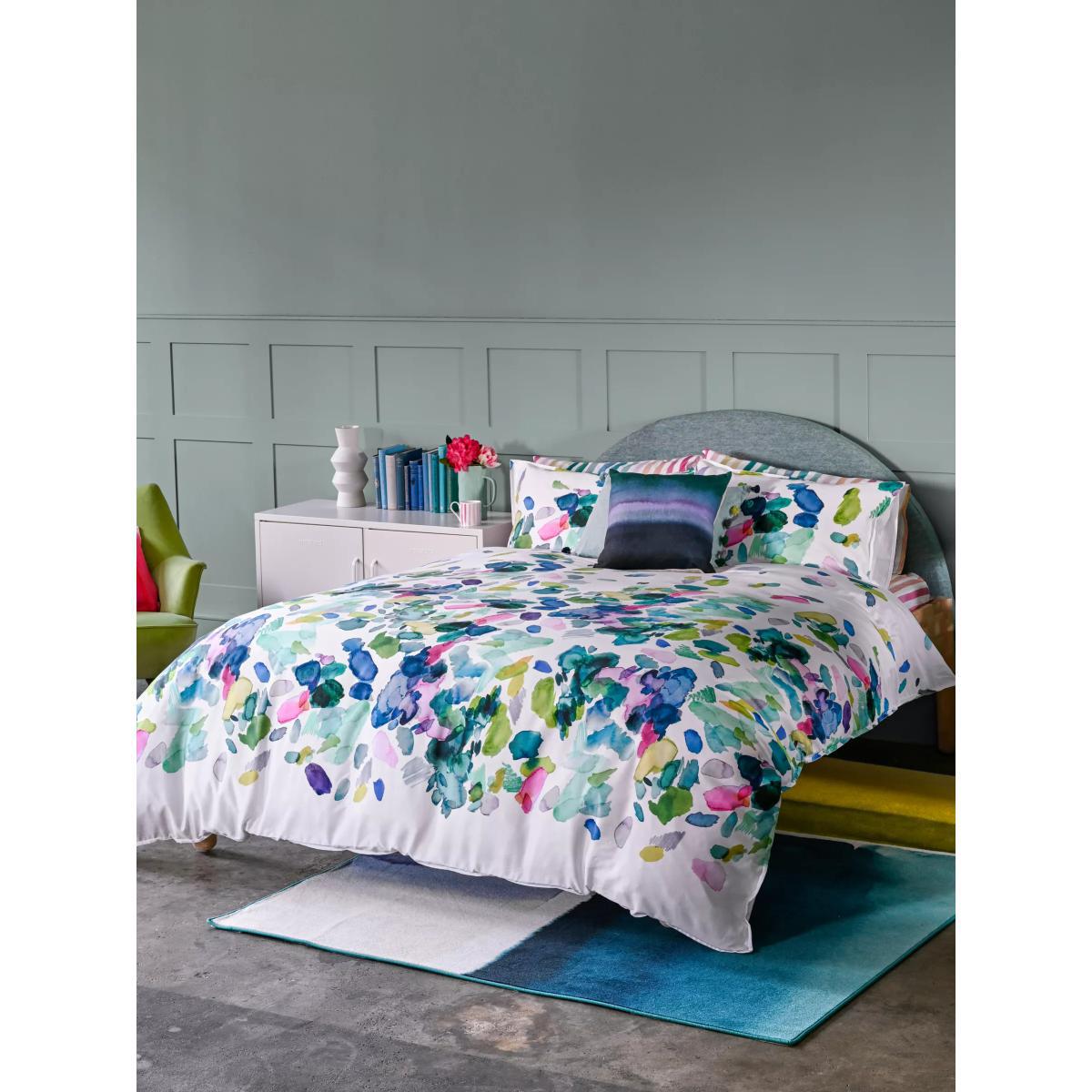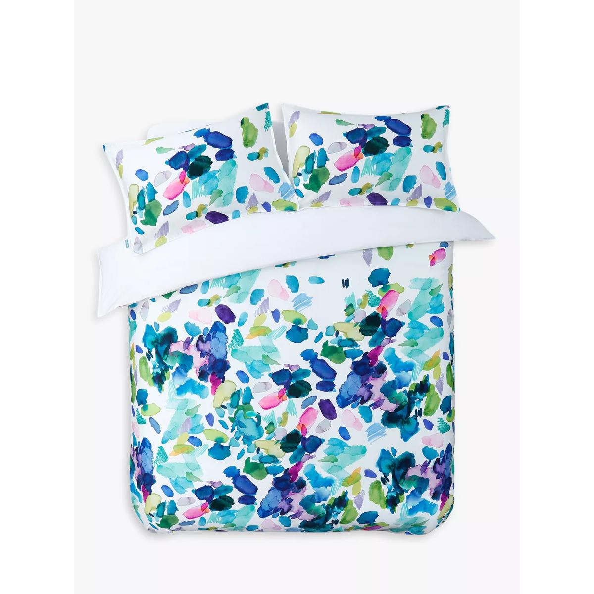 A fresh, modern and vibrant painterly print features across this bedding set, which will bring an accent of colour to your bedroom. It's made from temperature regulating natural cotton with a luxurious 300 thread count, so it's incredibly soft and will help to keep you cool while you sleep. The single set comes with one standard pillowcase, while the double, king and super king sets come with two standard pillowcases. Designed in Scotland bluebellgray is a celebration of vibrant colour and all things floral, recreated with love and care for your home. Each bluebellgray design is handpainted in the boutique brand's Scottish studio, before being transformed into gorgeous linens and textiles. Bedding sizes: Standard pillowcase, L75 x W50cm Single duvet cover, L200 x W135cm Double duvet cover, L200 x W200cm King duvet cover, L220 x W225cm Super king duvet cover, L220 x W260cm Have you thought about sheeting?.
