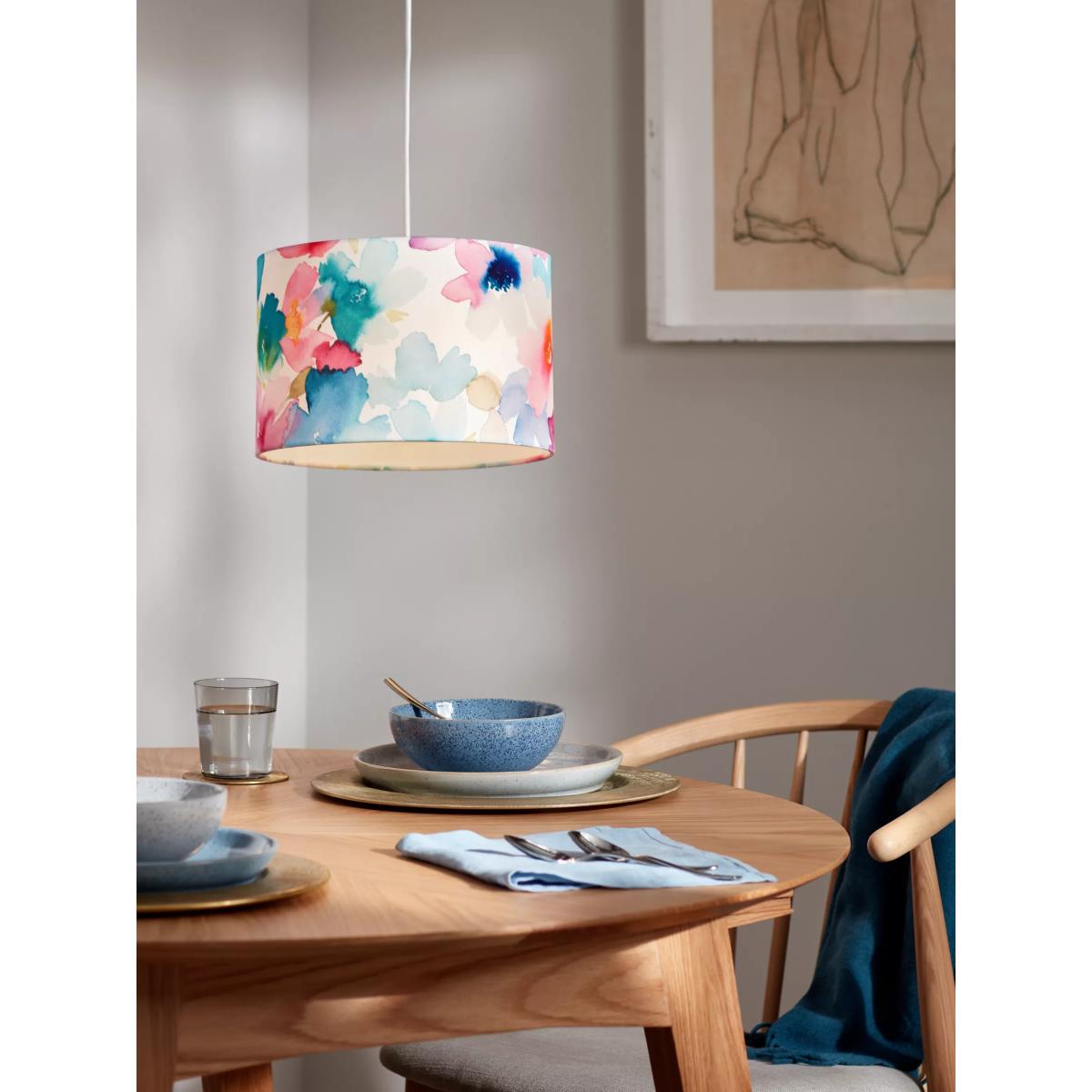 I love this colourful lampshade for adding a lively yet sophisticated touch to any space. Its vibrant, floral-inspired pattern works especially well in eclectic or contemporary interiors, bringing a splash of personality without overwhelming the room. It’s versatile enough to sit comfortably in living rooms, bedrooms, or even a creative home office. For styling, consider pairing it with neutral or pastel-coloured furnishings to highlight its bold design, and keep the overall look balanced with simple accessories. Practical tips include choosing a soft, ambient bulb to enhance the colours, and perhaps layering with other textured textiles or plants for a fresh, inviting feel.