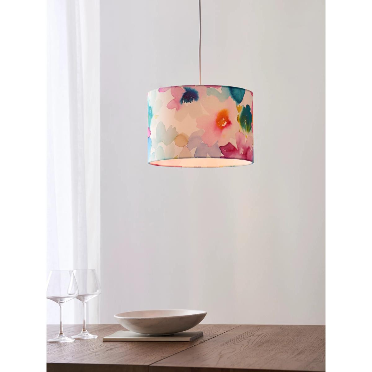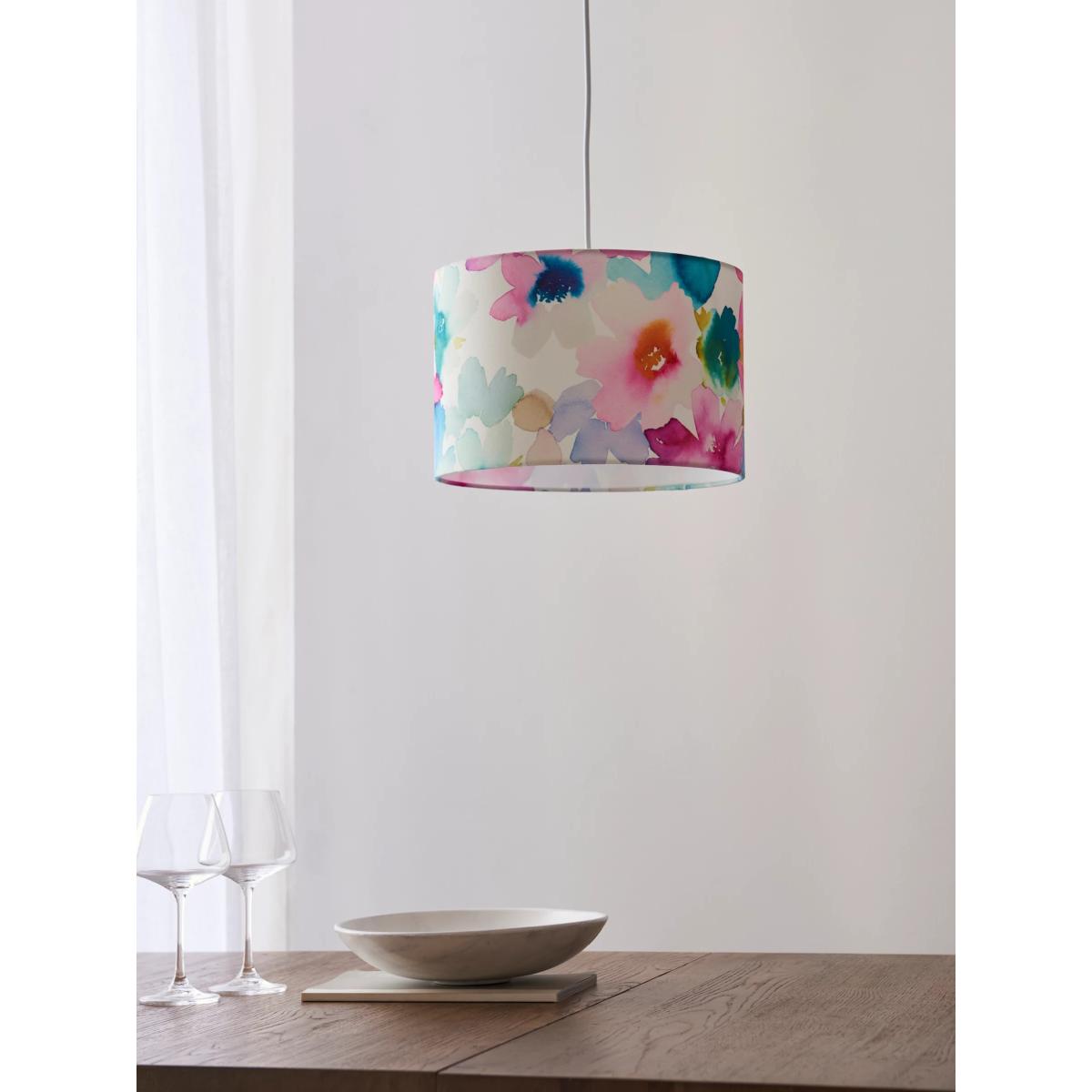 Digitally printed with a floral design in an abstract, watercolour style, this lampshade will add a bright, vibrant accent to your space. It's made from a faux linen fabric and suitable for both ceiling fittings and lamp bases. Perfect for enhancing a warm glow of light.