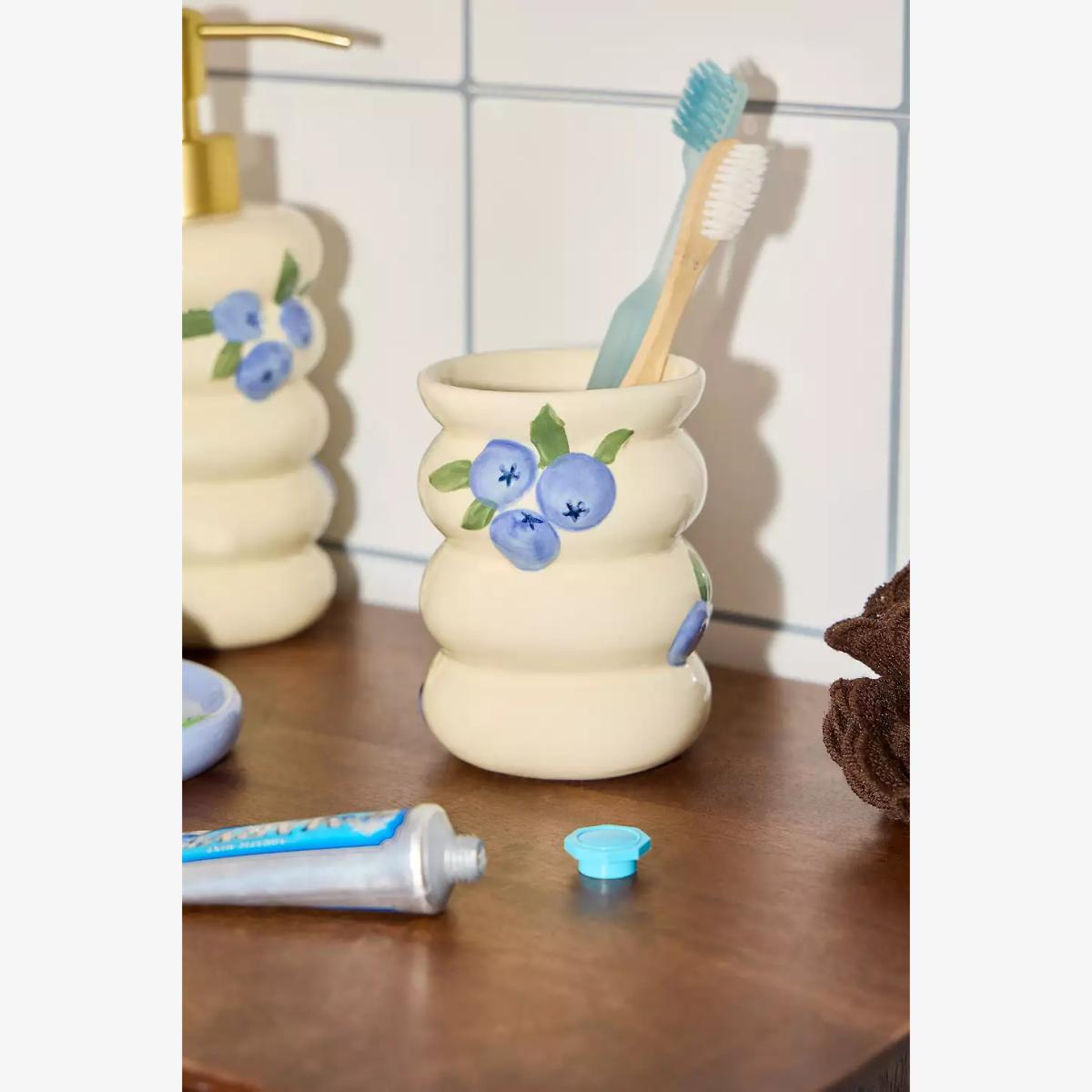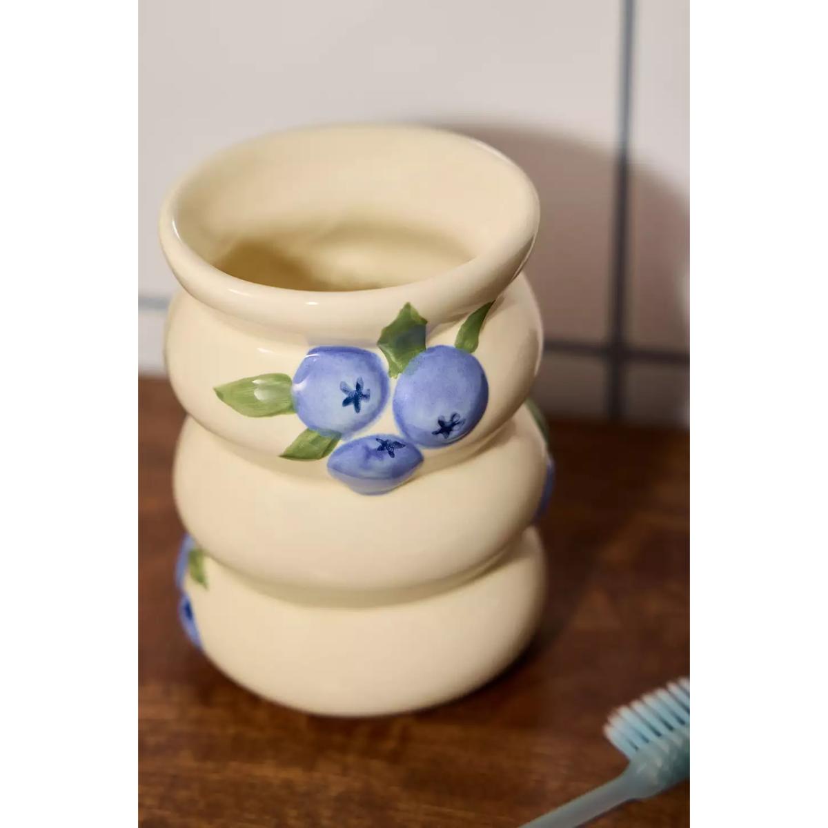 Add a fruity touch to your bathroom with this novelty storage pot. Decorated with blueberries, it's perfect for holding your toothbrushes and toothpaste. **Content + Care** \- 100% Stoneware \- Wipe clean