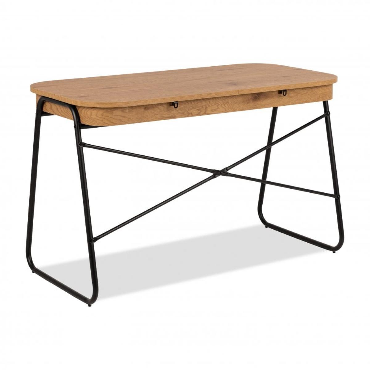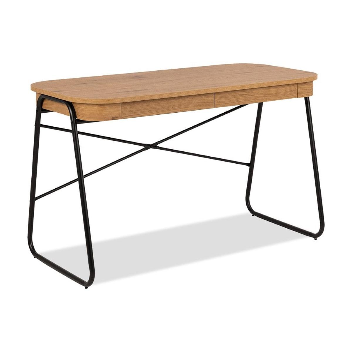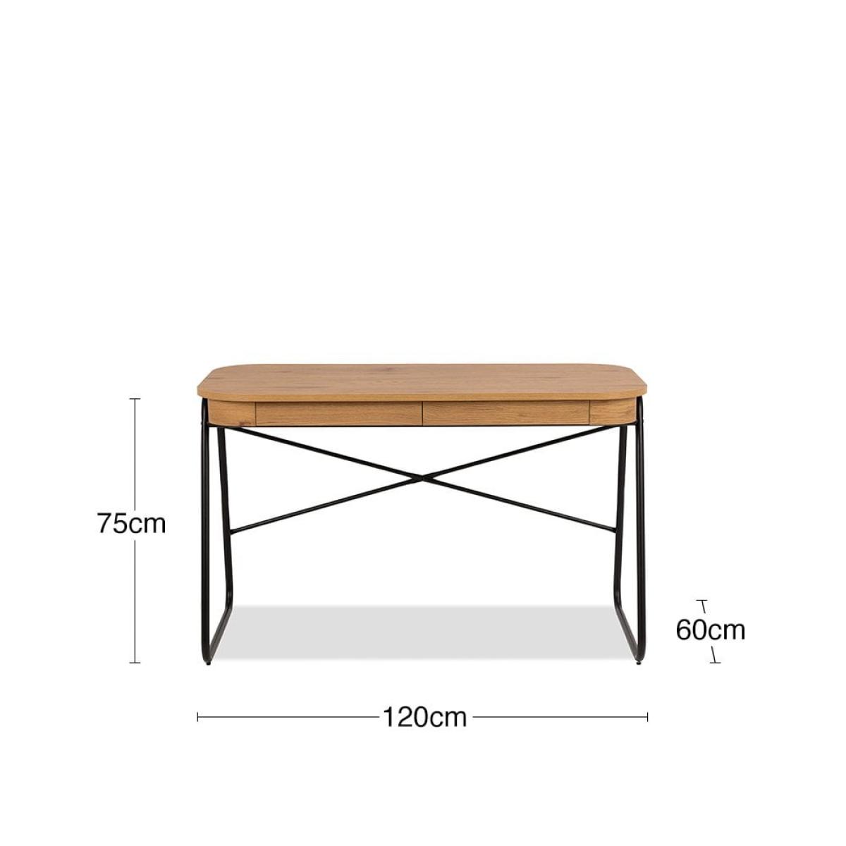 The Blueton Rectangular Desk mixes oak wood effect and metal for a practical and contemporary vibe to your bustling home office. The black tubular frame in metal is curved to match the rounded corners and a soft light wood finish for a soft yet industrial design. With two subtle yet spacious drawers.