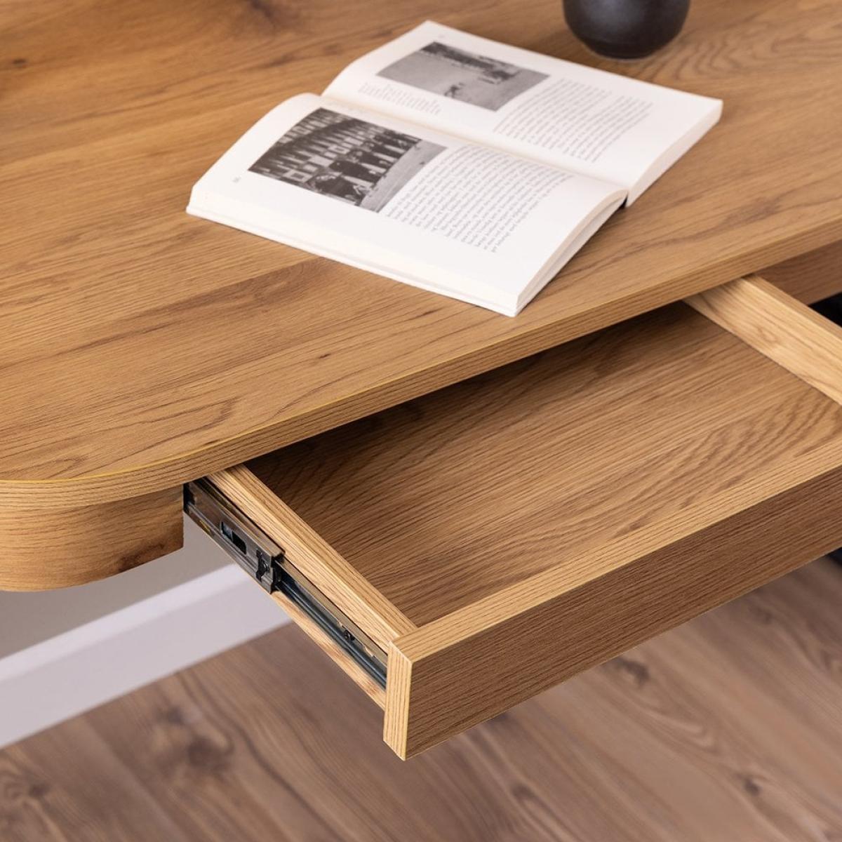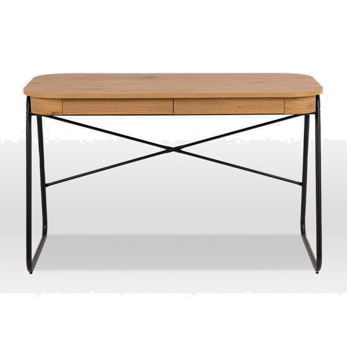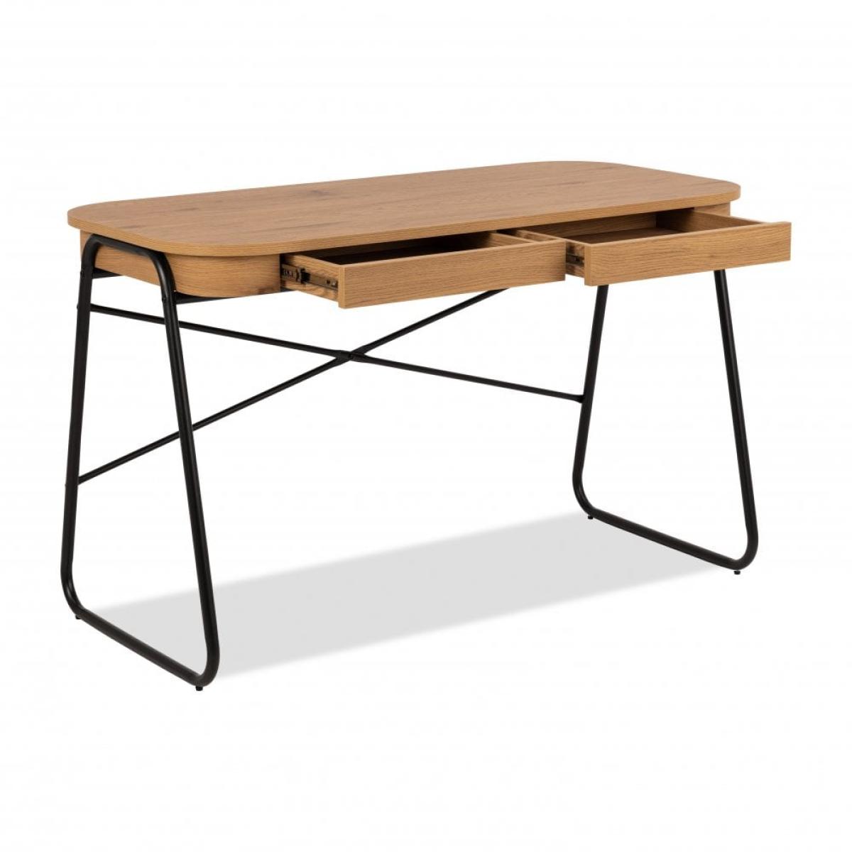 The Blueton Rectangular Desk mixes oak wood effect and metal for a practical and contemporary vibe to your bustling home office. The black tubular frame in metal is curved to match the rounded corners and a soft light wood finish for a soft yet industrial design. With two subtle yet spacious drawers.