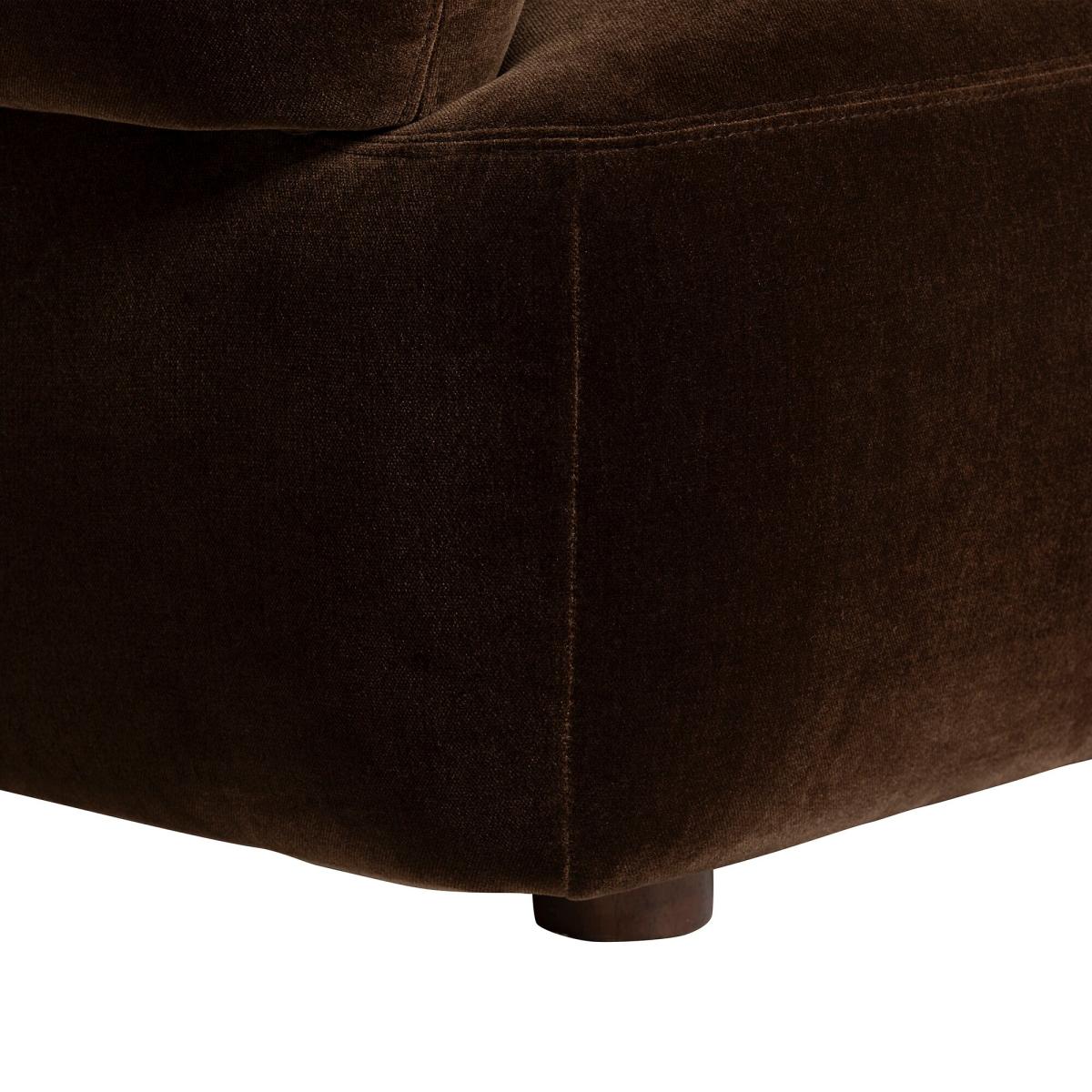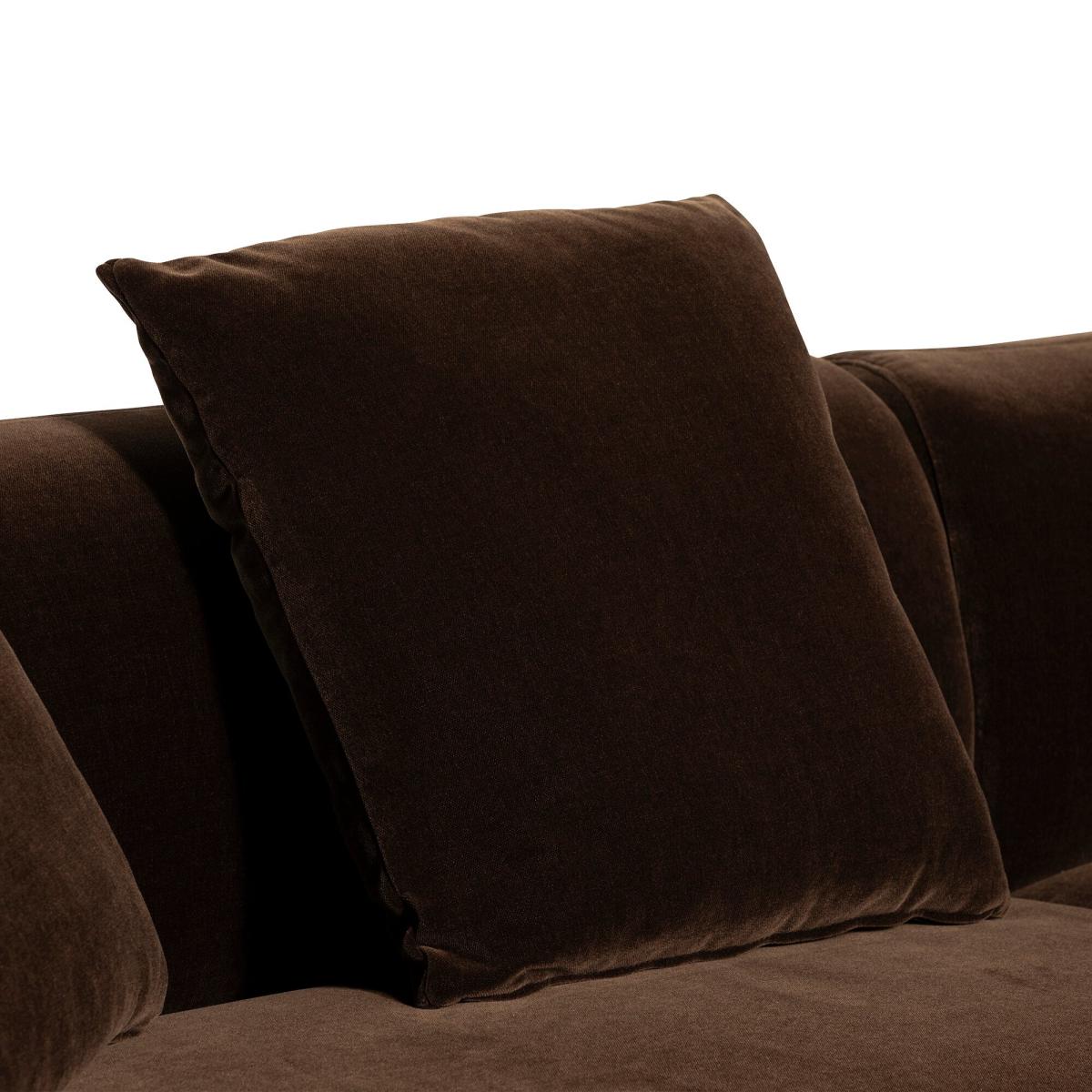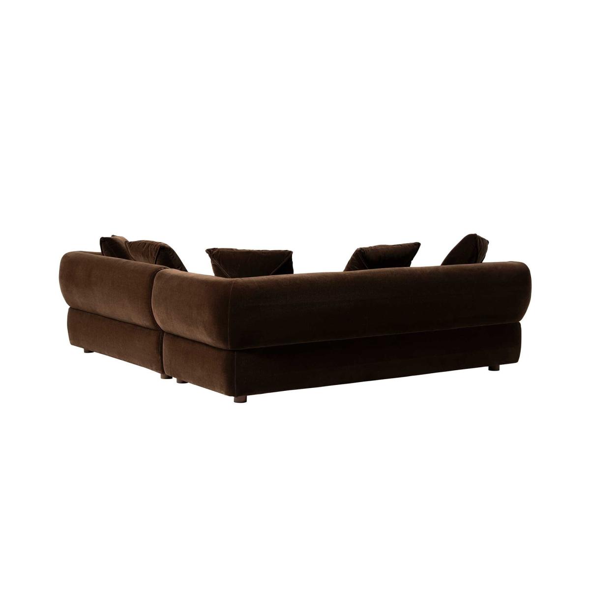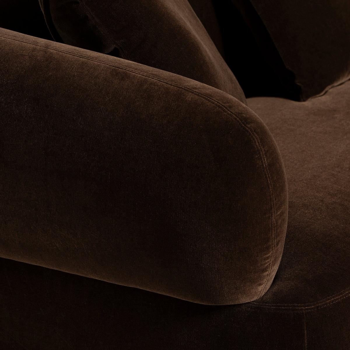 I’d refer to this as the Blume corner sofa - it’s a smart choice if you’re after generous seating without a rigid, boxy feel. The deep brown upholstery feels grounding in both contemporary and more traditional schemes, and its low, curving arms give a relaxed, almost modular look. In a living room with soft neutrals or muted terracotta walls, it really comes into its own. For styling, keep cushions in varied textures - think a wool lumbar pillow or a linen square in a contrasting shade - then layer a chunky knit throw over the chaise end to signal where you’ll lounge. A natural-wood coffee table or an open-weave jute rug helps to lighten the palette, while a slim console behind the sofa can double as a display ledge and offer balance if the back faces into an open-plan space. Regularly rotate the scatter cushions and vacuum in those deep seats to maintain shape and avoid wear.