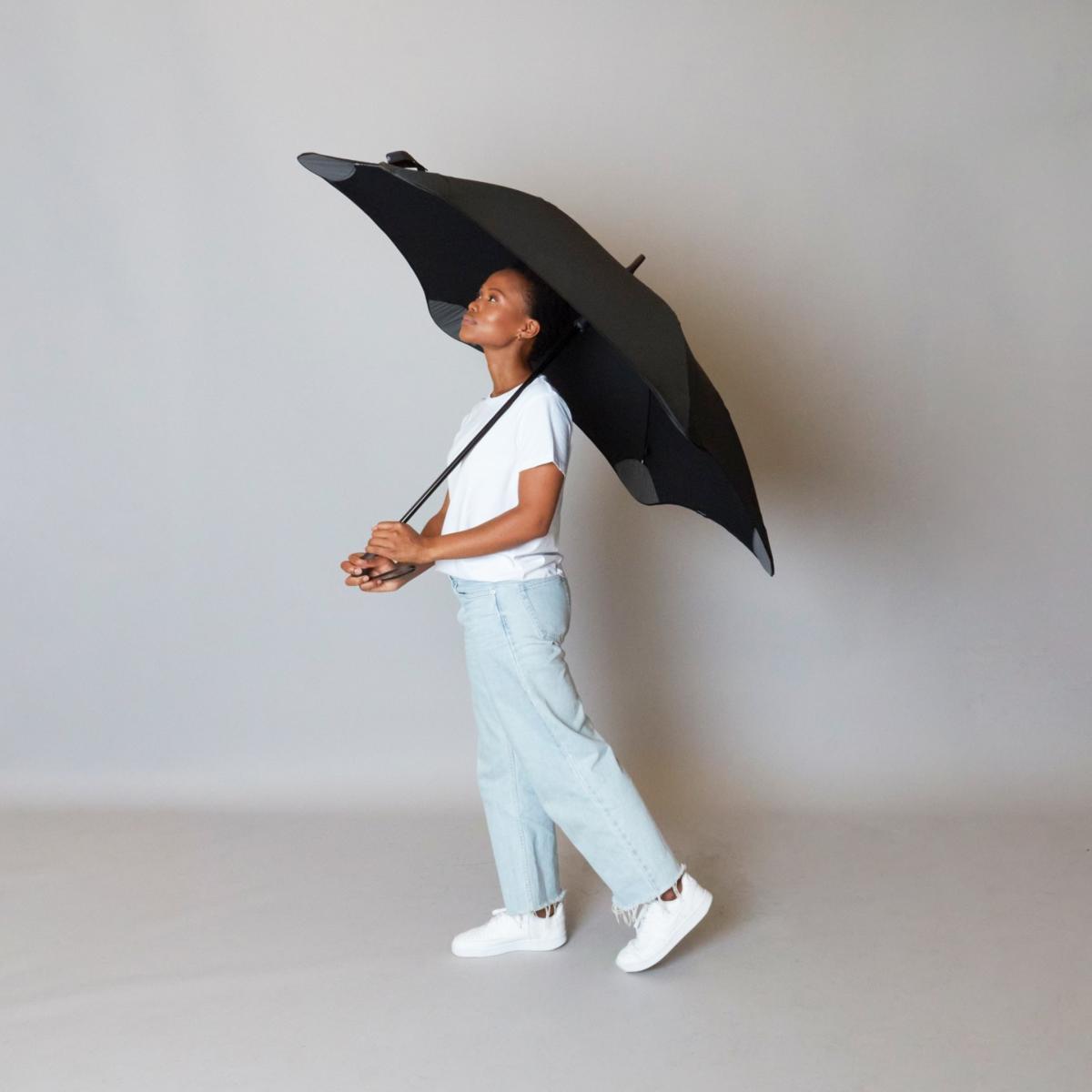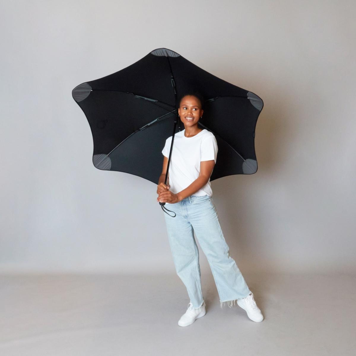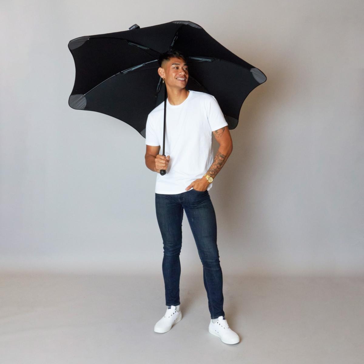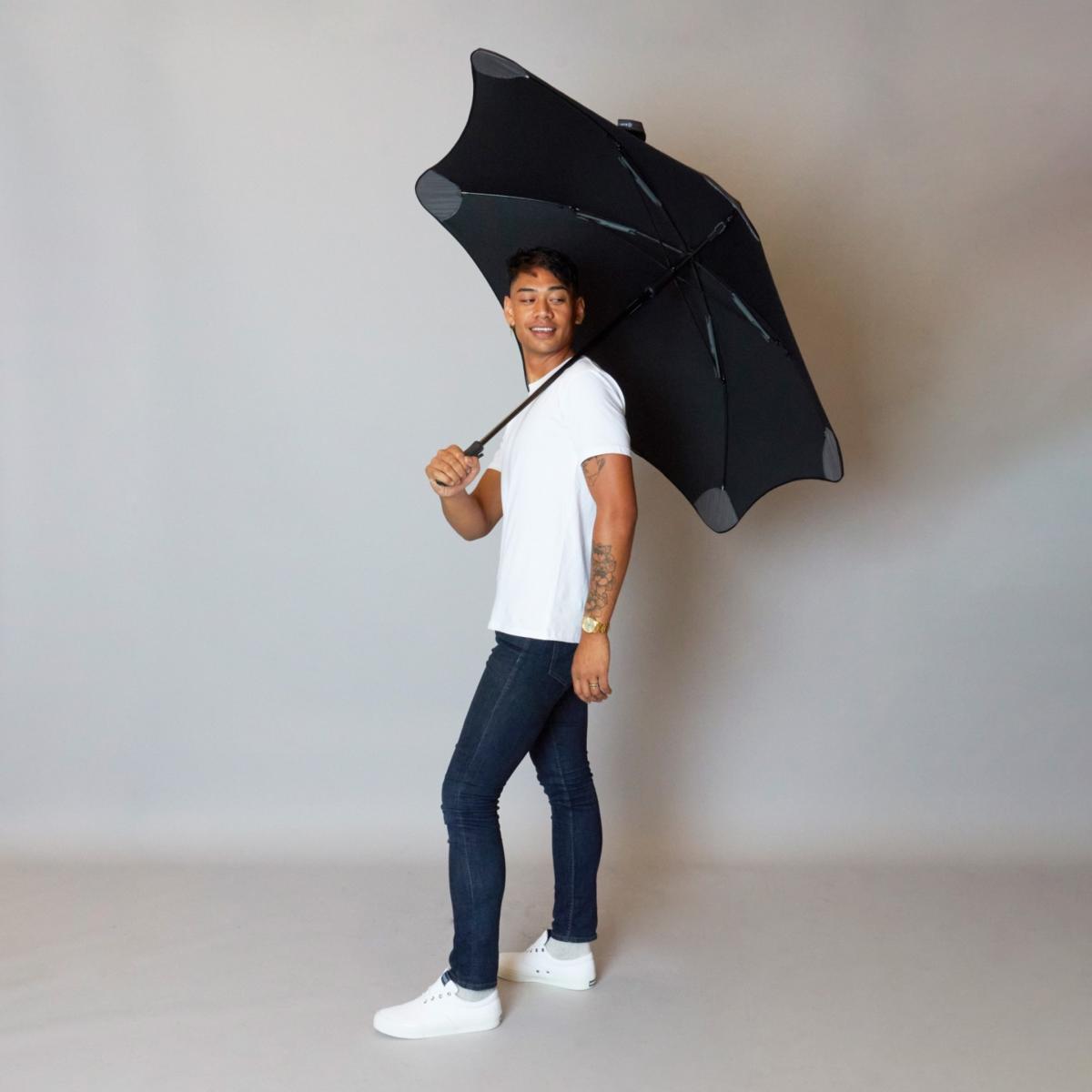 Broad and elegant, the BLUNT Exec is perfect for business, and those whose business it is to keep others dry. The largest full-length street umbrella in the Blunt range, with a stylish handle strap, the Exec is big enough for at least two people making it perfect for rainy morning coffee runs or lunchtime meetings out of the office. The BLUNT Exec model is built with a strong lightweight aluminum shaft to withstand the elements. Comes with a black carry sleeve.