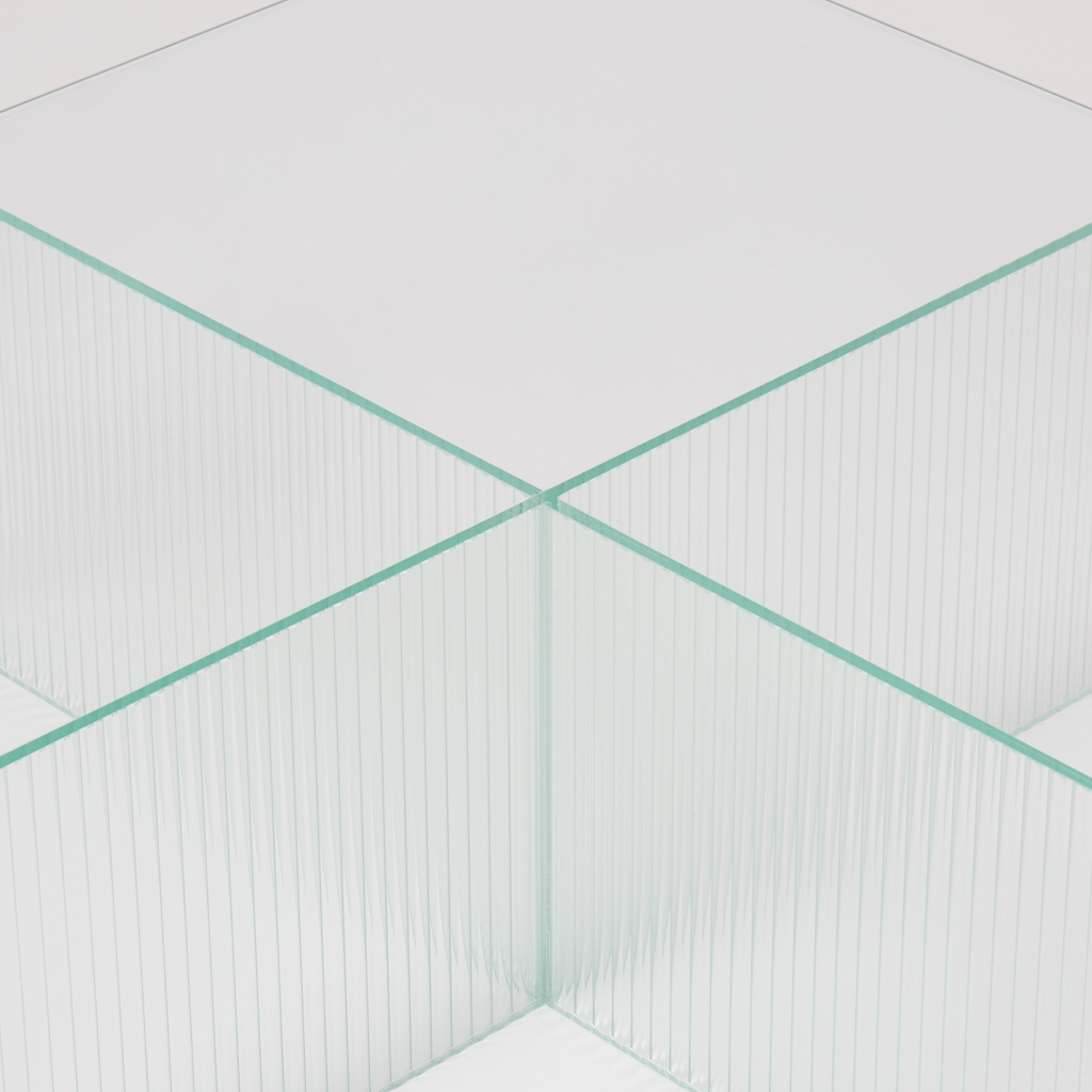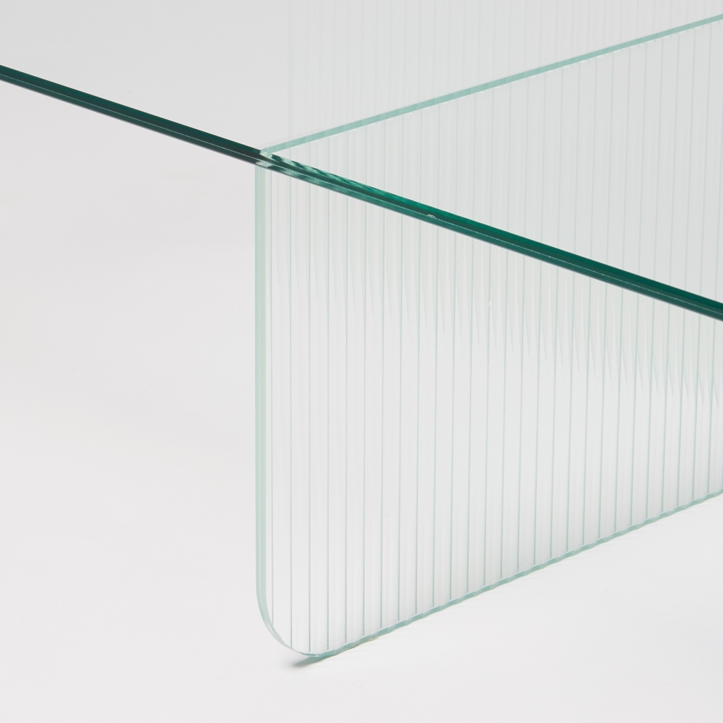 Designed exclusively for The Conran Shop by Daniel Schofield, the award-winning Blur Coffee Table showcases a simple yet visually enticing form, which consists of a clear-cut glass top resting on an intricately-crafted fluted glass base. Technically challenging to create, the base is cut using water jets to achieve the contemporary finish. Fragmenting light and creating a gentle visual distortion, the base lends this minimalist table a unique edge. Award-winning designer Daniel Schofield distils each idea down to its simplest form to achieve a clean, honest and poetic aesthetic, which is especially evident in the Blur Coffee and Side Tables.