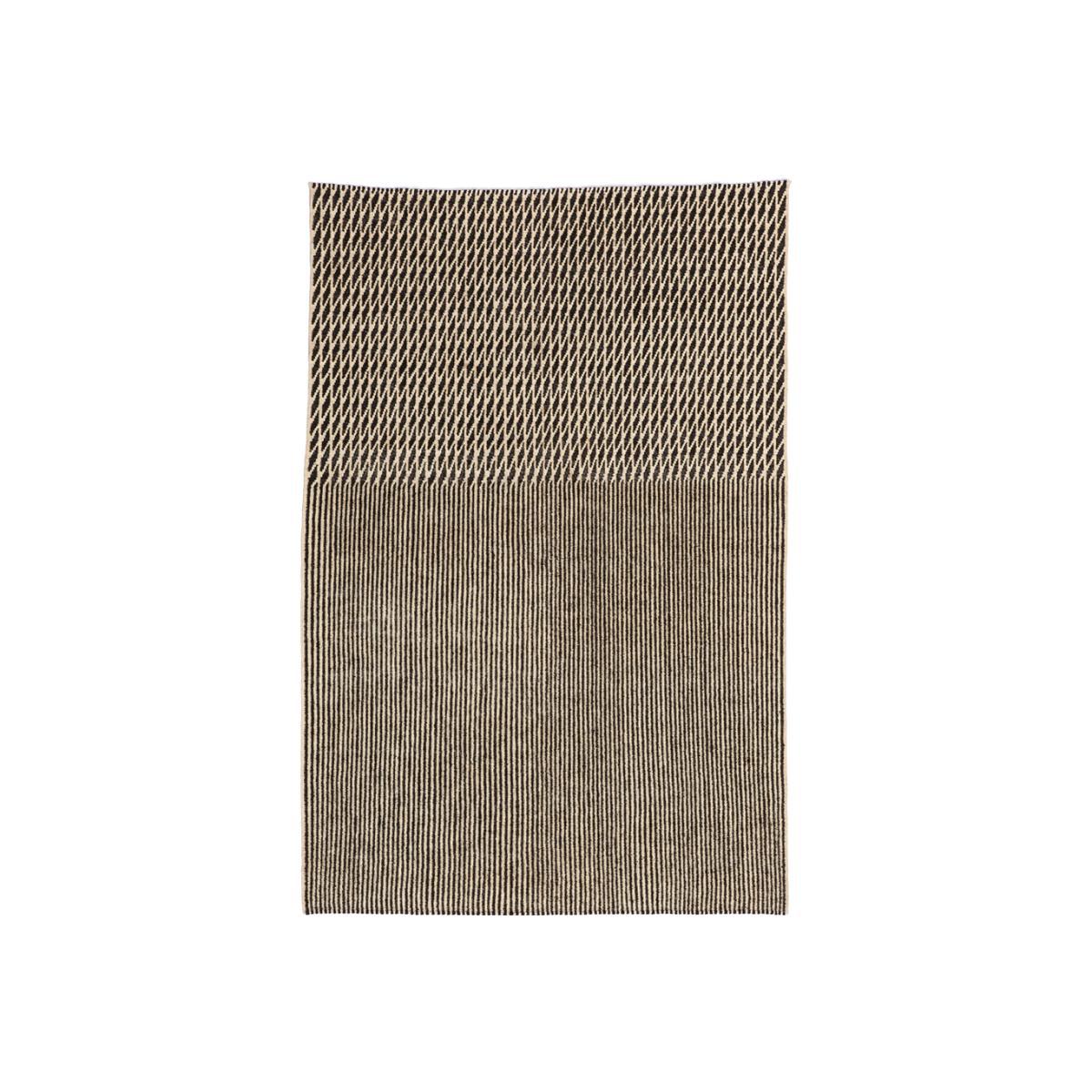 Designed by Ronan and Erwan Bouroullec for Spanish design house nanimarquina, the large black Blur Rug will transform your living space. Showcasing geometric shapes and rhythmic repetition, the Blur Rug perfectly demonstrates the definitive hallmarks of the Bouroullec brothers. The statement flat-weave rug is expertly hand-loomed by skilled artisans using 100% hand-spun Afghan wool and is a contemporary interpretation of a Kilim Rug. This type of traditional tapestry weave was notably produced by the ancient Persian Empire but has also been found to date back to the fourth century. Founded in 1987 by Nani Marquina, the daughter of pioneering Spanish designer Rafael Marquina, nanimarquina blends contemporary designs with traditional techniques to create unique and eye-catching handcrafted rugs. nanimarquina collaborates with prestigious international designers to design unique rugs and crafts them with particular attention to selecting quality raw materials. Conscious of its societal and environmental impact, nanimarquina places ethics at the forefront of its production process. Passionate about reusing, reducing and recycling, it aims to preserve natural resources through the use of biodegradable and recycled products. It uses an eco-friendly chemical-free washing method that enriches the environment with nitrogen and uses less water than traditional cleaning methods. All nanimarquina rugs incorporate the Care & Fair logo, an organisation that guarantees products are manufactured free of child labour. Care instructions: Can be dry cleaned.