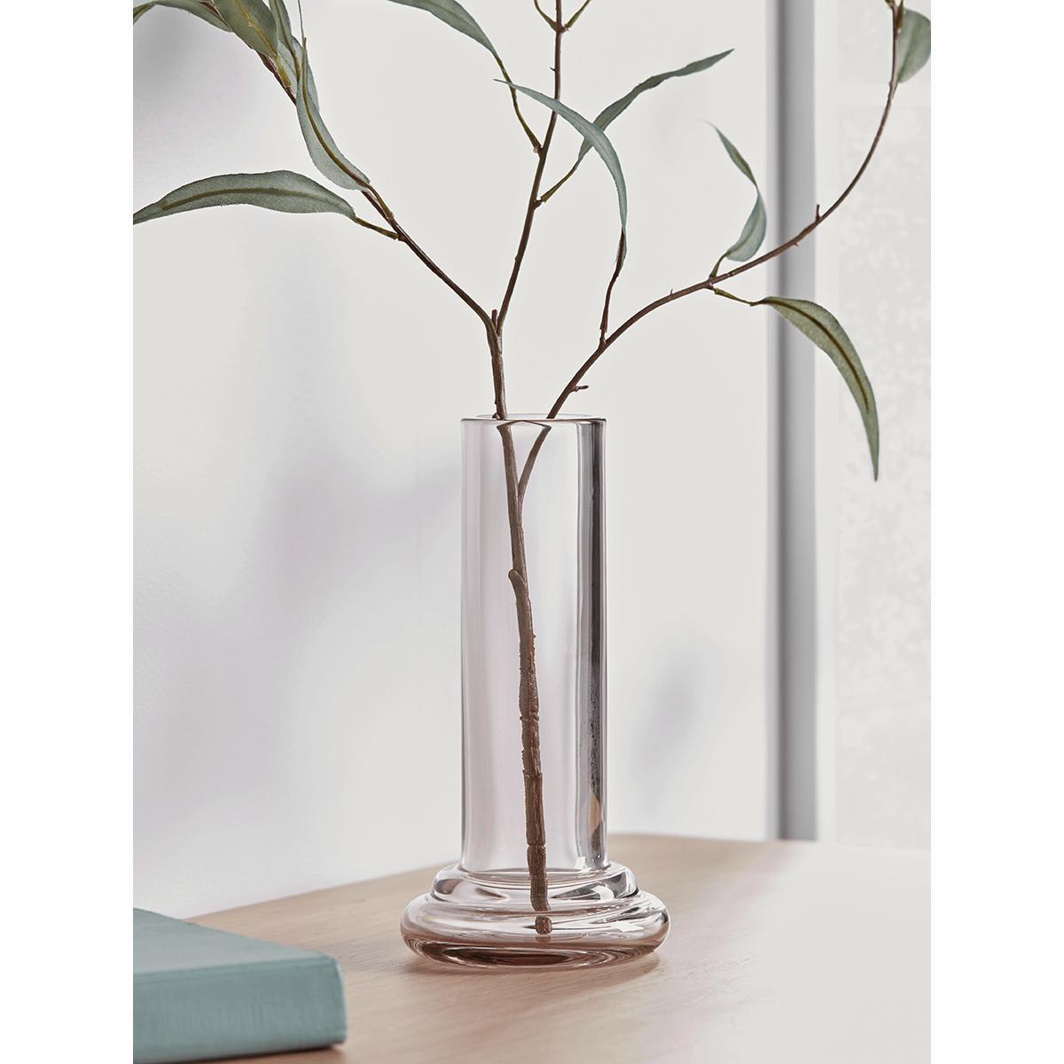 Perfect for small posies or single stems, our tall, elegant column vase is crafted from glass in softest blush. Display on a console table or windowsill for a simple but eye-catching decorative accent.