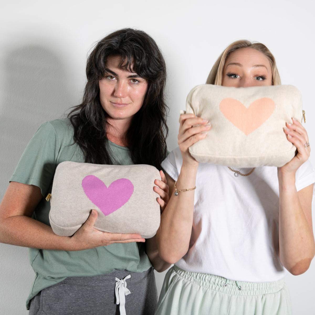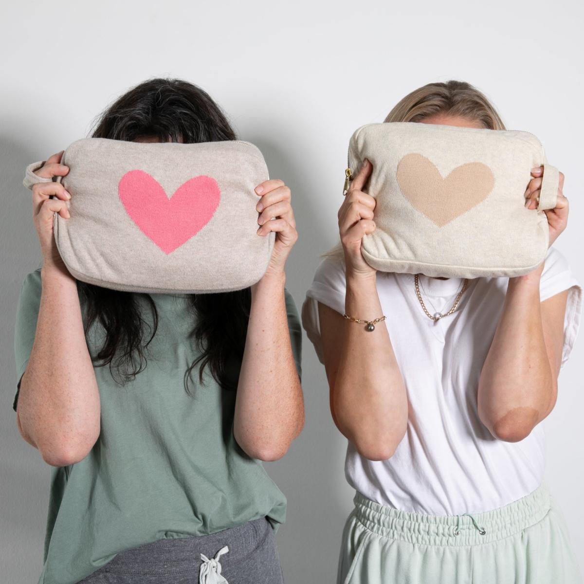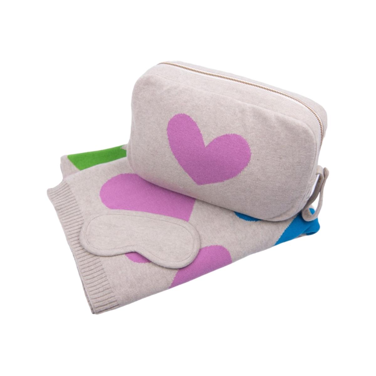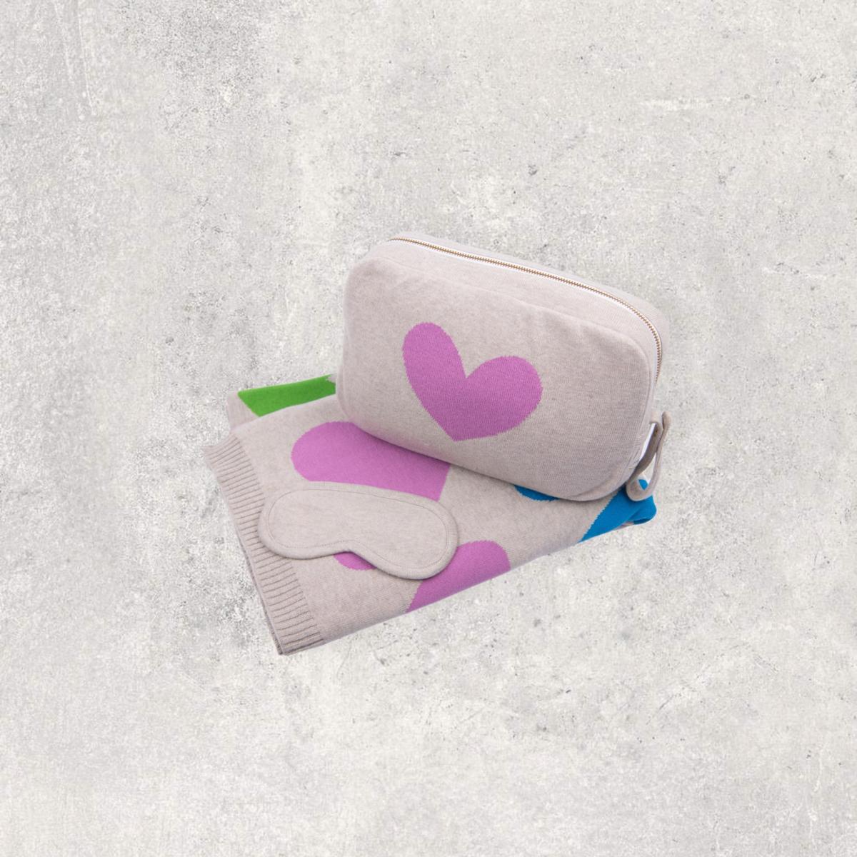 Let’s get to the heart of the matter.  Our luxe travel set with a cheerful rainbow of pop graphic hearts has a mod and retro vibe all at once, and it couldn’t be more comfortable.