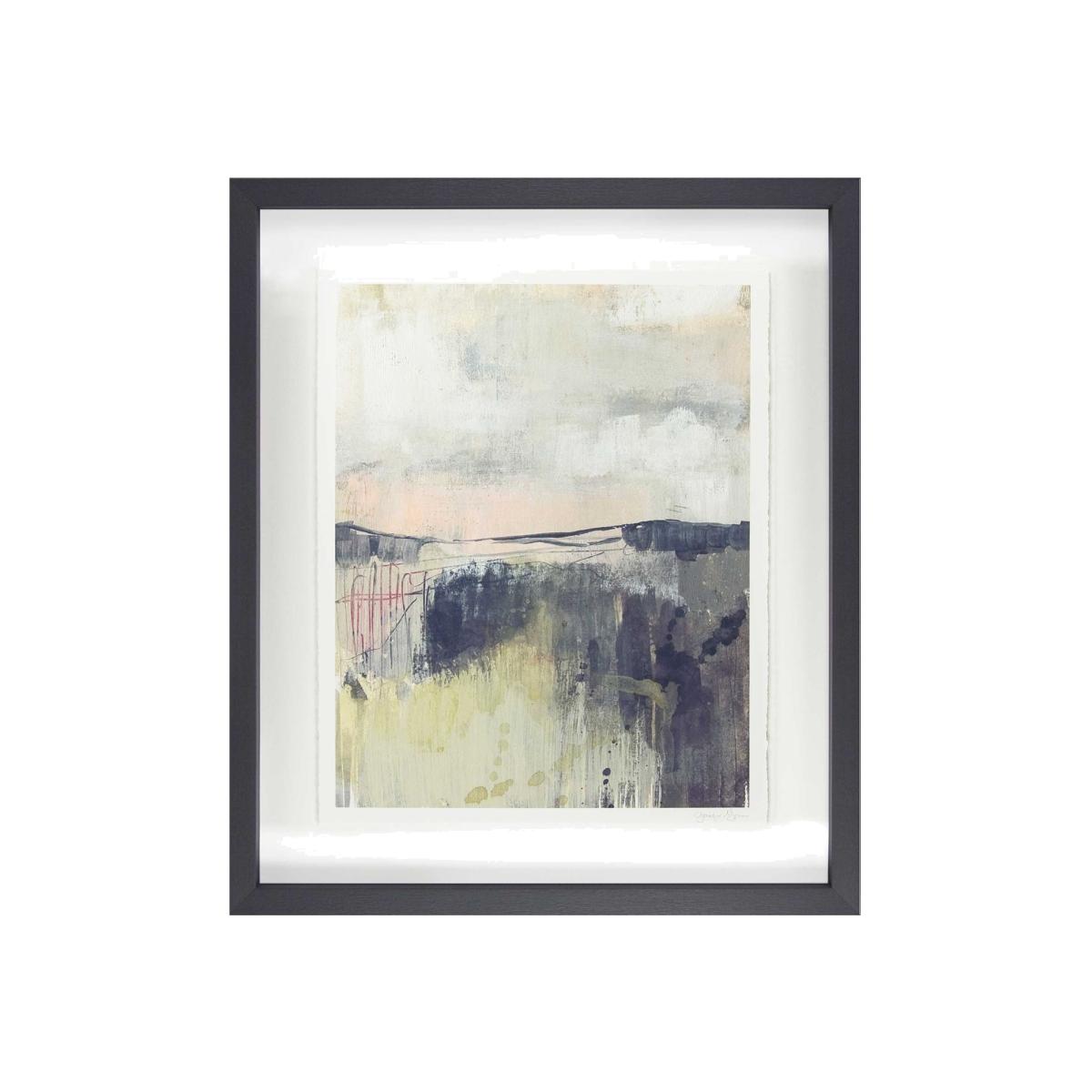I love this piece because of its subtle colour palette and calming, abstract design-it adds a touch of serenity without overwhelming the space. It works particularly well in contemporary or minimalist interiors, where its understated tones can tie a room together. For styling tips, consider placing it above a neutral sofa or in a hallway to create a focal point. Pair it with soft textiles and metallic accents to enhance its modern appeal. The frame's darker edge adds definition, making it versatile for various colour schemes, and it’s perfect for those looking to add artistic depth with a refined but unobtrusive statement piece.