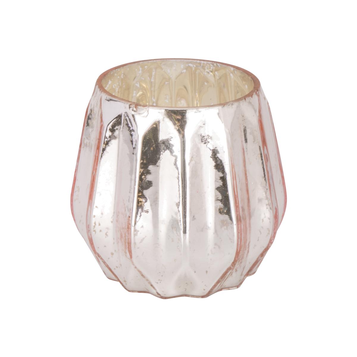 A beautifully designed glass hurricane, this Blush Mercury Candle Holder is formed with a rippled surface and finished with a gorgeous pink tint. Its metallic mercury effect will reflect the glow of your tea light and create and enhance the ambience of your room.