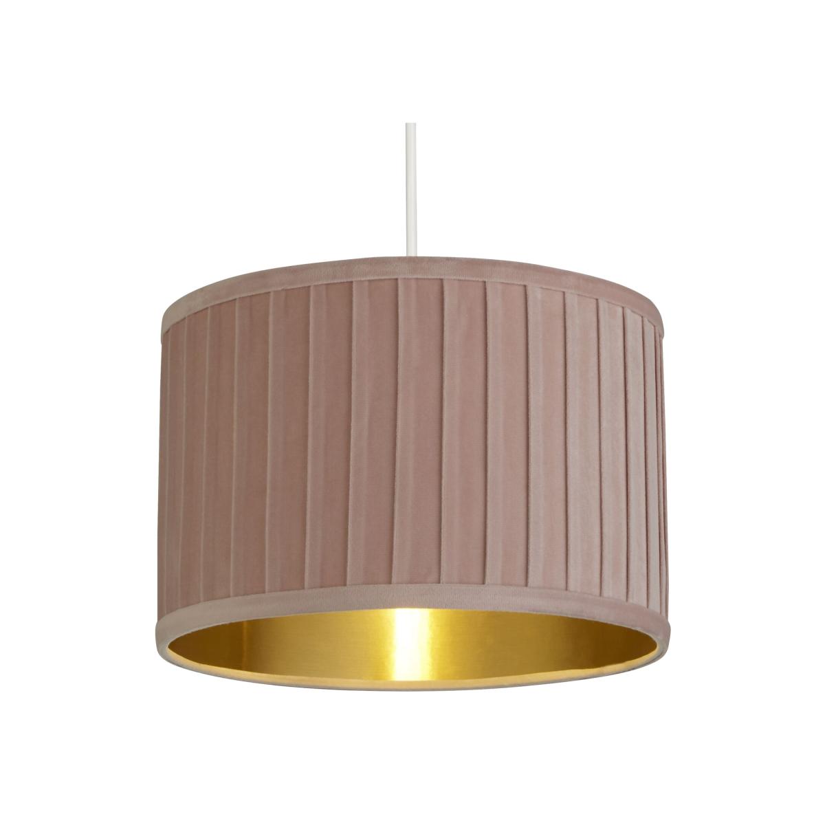 Creating a soft, warm ambiance with its pink, ribbed exterior, the Blush Pink Pleated Ceiling Shade infuses spaces with comforting hues. Crafted from velvet, plastic, and mild steel, it emanates elegance. Its taped edge and white gimbal from the top add a touch of sophistication. The pink ribbed shade not only creates a cozy atmosphere but also offers gentle, diffused illumination, perfect for relaxation and comfort. Bulb not included. We recommend 1 x B22, E14 or E27 bulbs, 10. W.