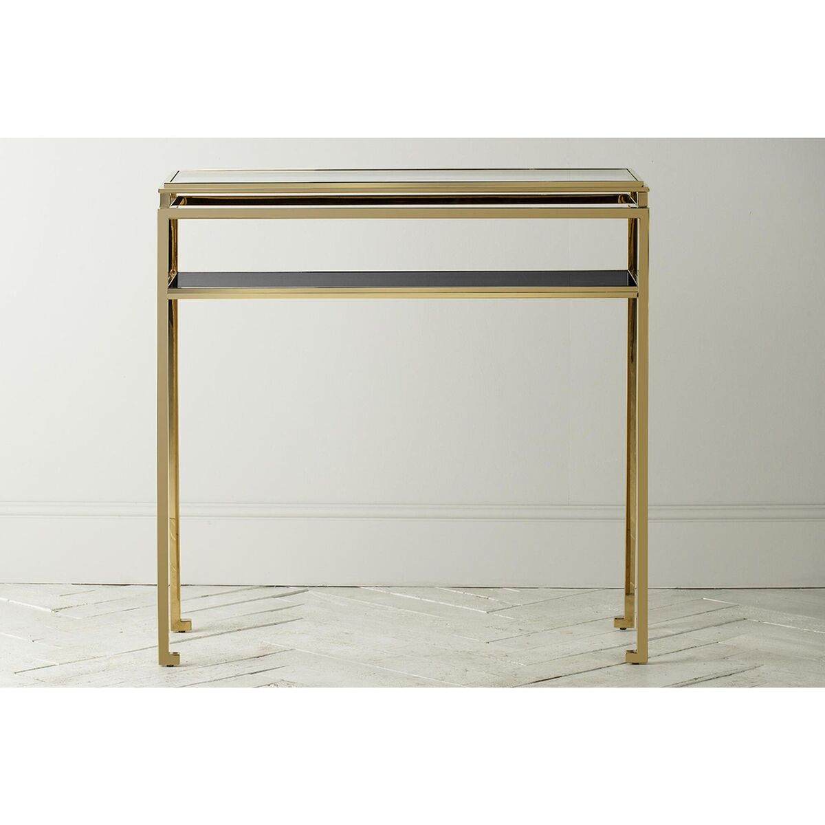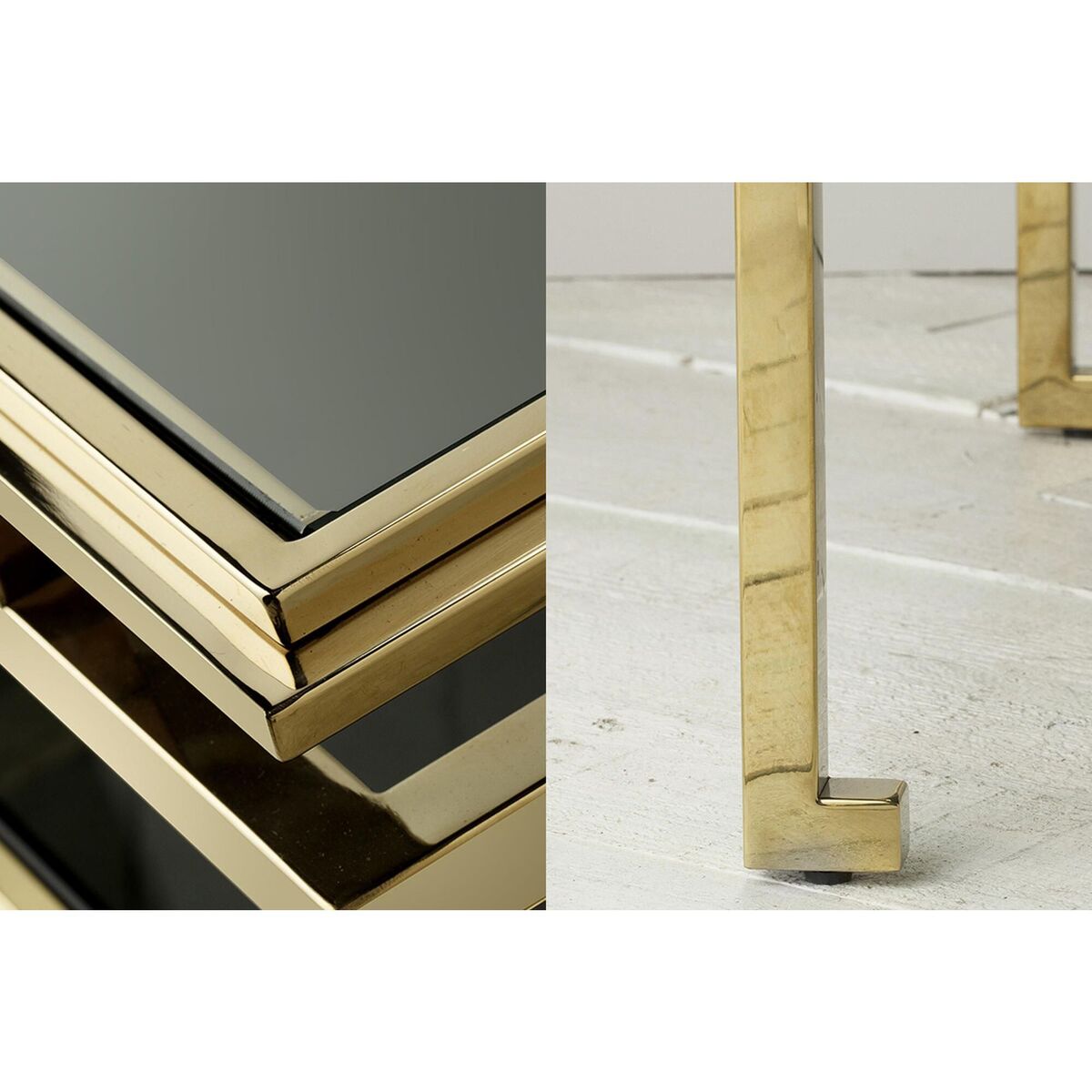 Meet the Boaz range, a 70's inspired design to take your living space to the next level. Available with a gold or silver brass finished base, paired with clear glass and black glass for contrast and added retro-appeal. Striking modular-like design with two-level surface and slim metal legs, hide a magazine or add a faux plant to complete the look. More Information:Materials: Glass, MetalDimensions:H:92cm x W:90cm x D:30cm; 17kgsAssembly Required: No