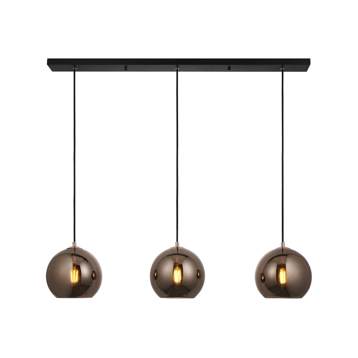 Boaz Copper Mirrored Glass Three Light Pendant in Matt Black