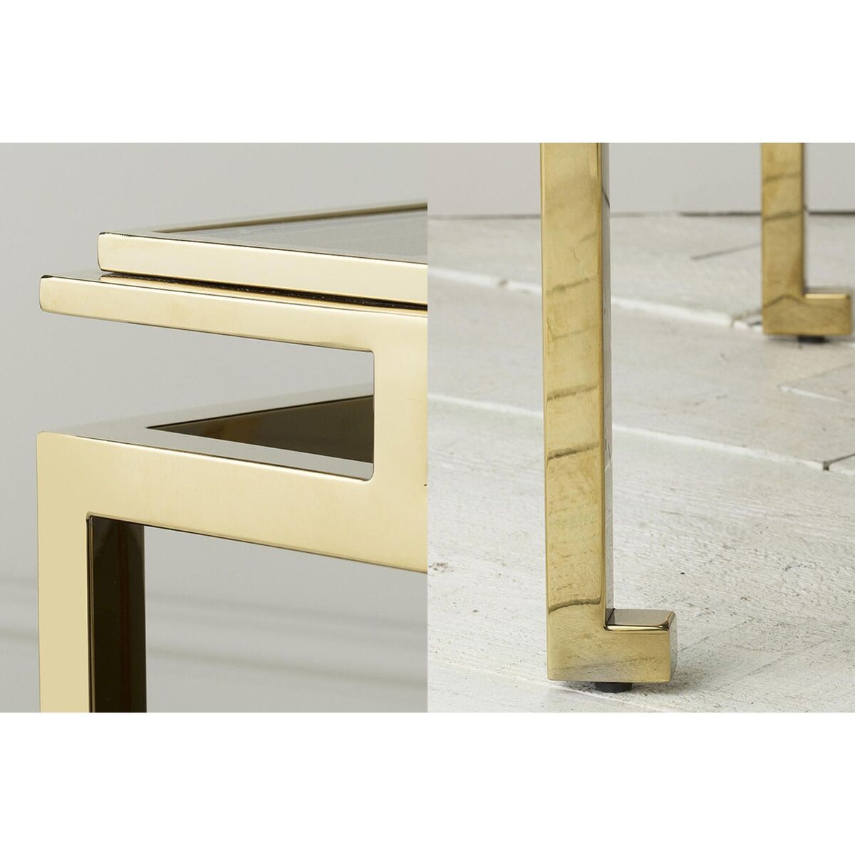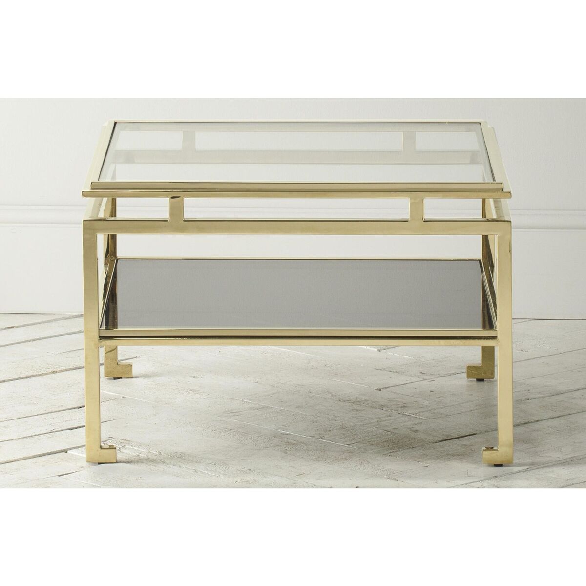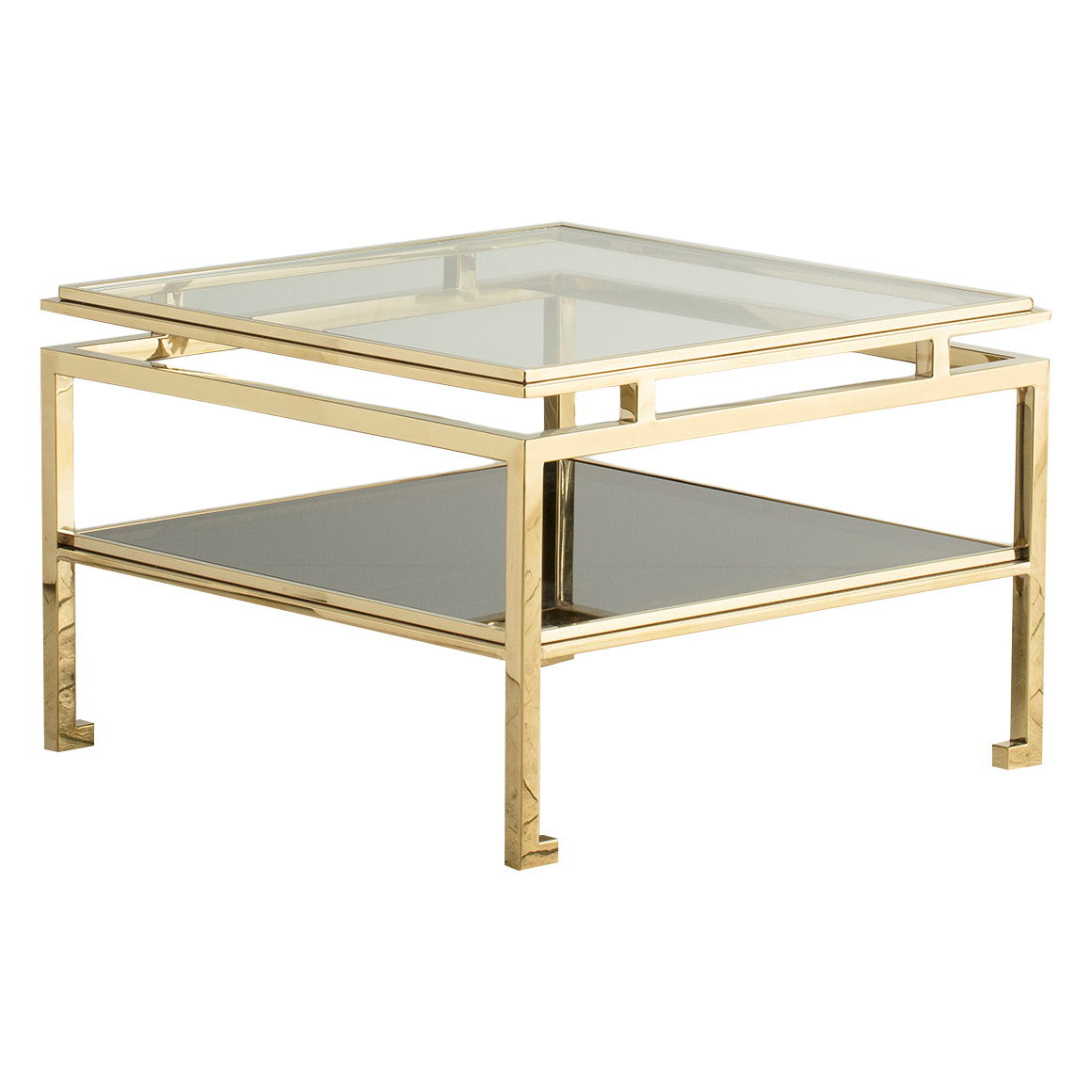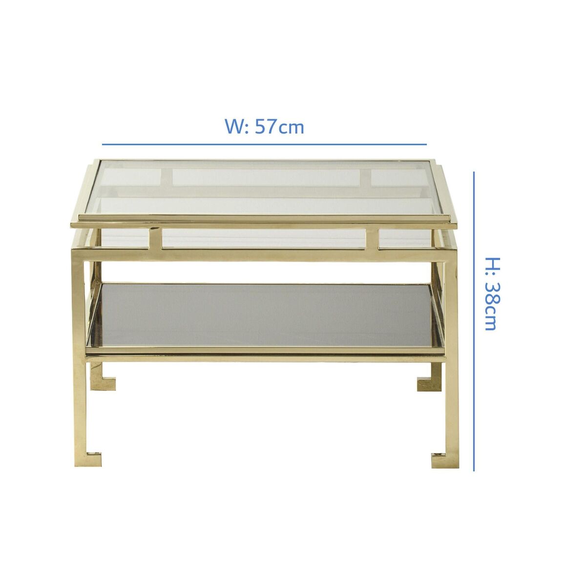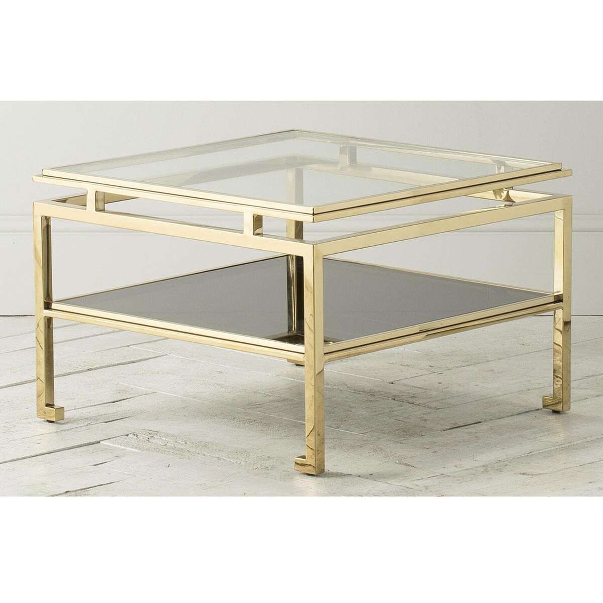 Meet the Boaz range, a 70's inspired design to take your living space to the next level. Available with a gold or silver brass finished base, paired with clear glass and black glass for contrast and added retro-appeal. Striking modular-like design with two-level surface and slim metal legs, hide a magazine or add a faux plant to complete the look.