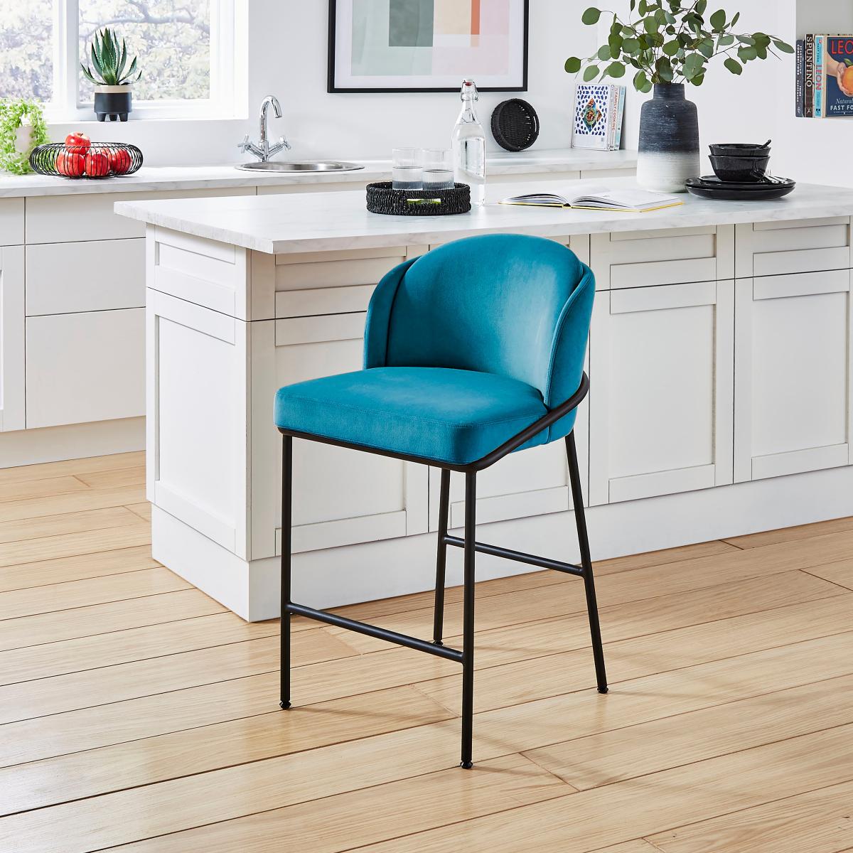 The Bobbi Barstool really stands out with its lush velvet finish and deep peacock hue, making it a great statement piece in both contemporary and eclectic interiors. I love its rich texture, which adds a luxurious touch without overwhelming the space. It works particularly well in kitchens and bar areas that have a touch of glamour or personalised character, but can also elevate a classic breakfast nook. To style it effectively, consider pairing with metallic accents or neutral surroundings to let the colour and plush fabric shine. Practical tip: keep the velvet looking its best by avoiding direct sunlight and regular gentle cleaning to maintain its colour and softness.