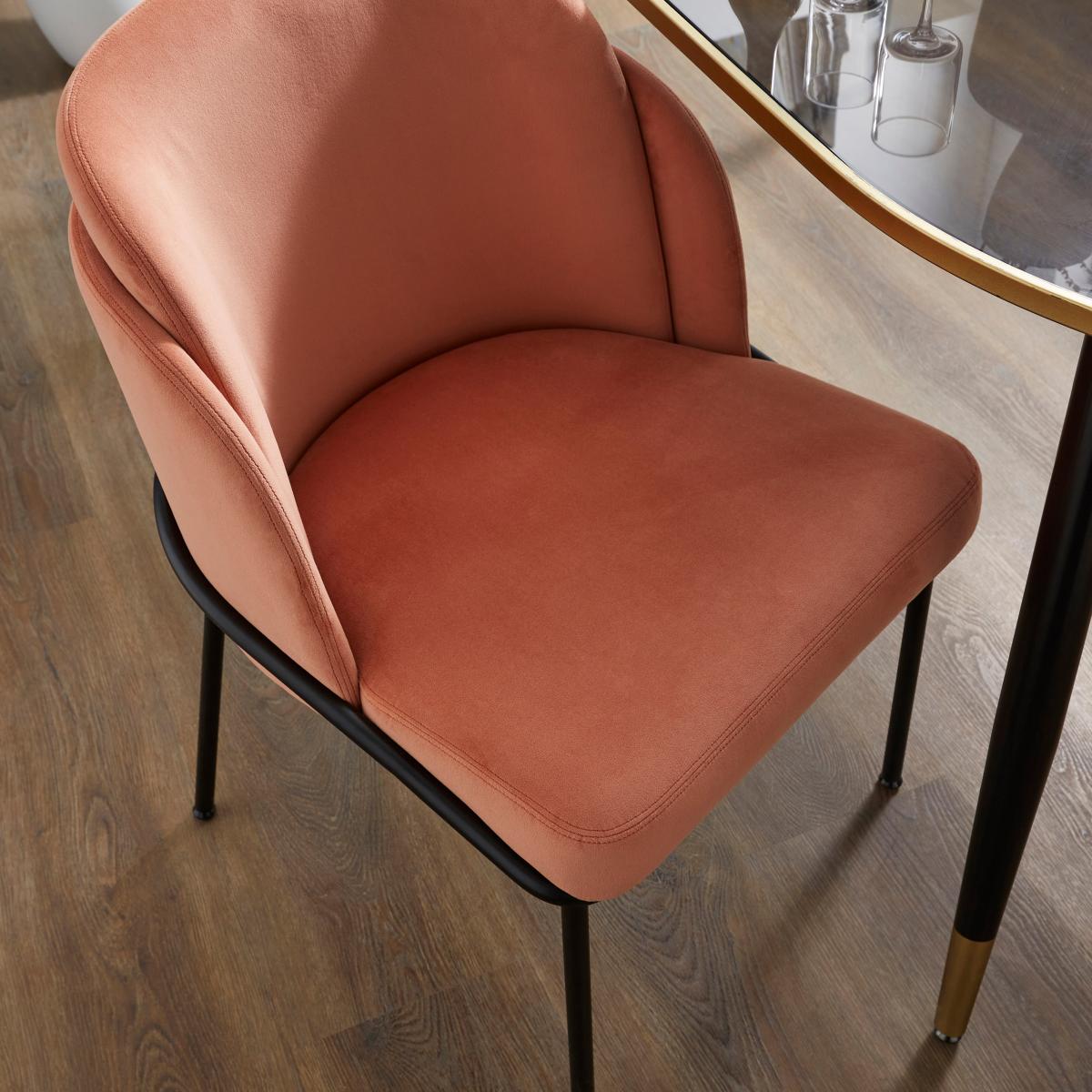 I love the Bobbi dining chair for its vibrant velvet in Red Clay, which adds warmth and a touch of luxe to any dining space. It works particularly well in contemporary interiors, especially those with a colour palette that includes earthy tones or metallic accents, as it creates a striking focal point. For styling tips, consider pairing it with a sleek, minimalist table to let the chair’s colour stand out, or mix with neutral tones for a more understated yet sophisticated look. It also works well in eclectic settings where bold statement pieces are embraced, and its slender black legs with gold tips help elevate the overall aesthetic-perfect for adding character without overcrowding the space.