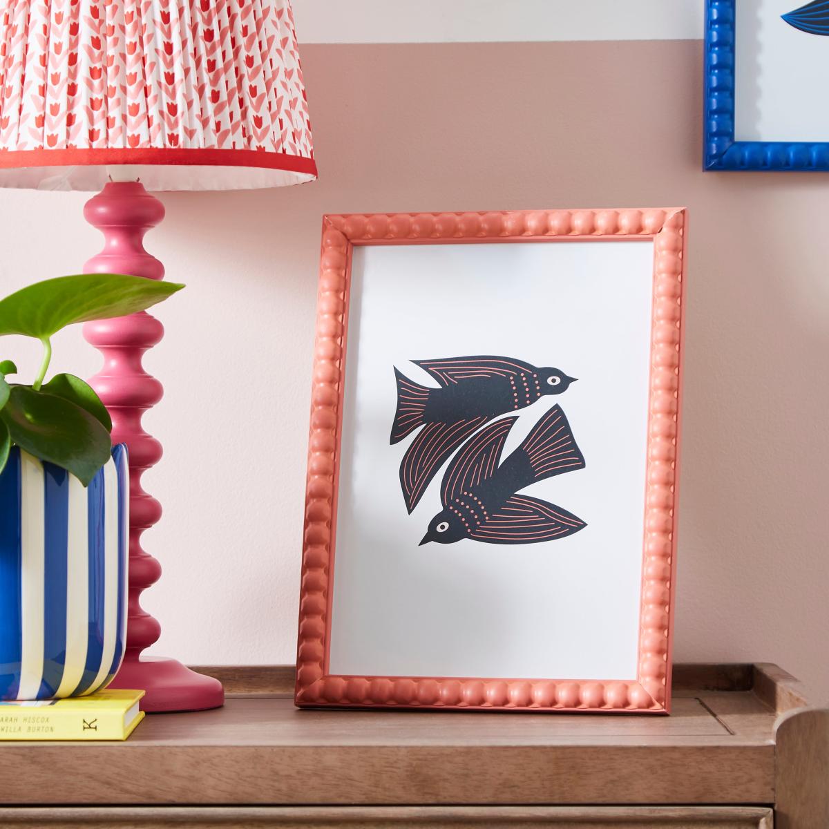 I love this pink bobbin A4 frame for adding a pop of colour to any space. Its coral shade is versatile enough to work in both modern and eclectic interiors, and it’s a great way to frame favourite photographs or artwork without overwhelming the space. Style it on a shelf or mantel with other playful accents to create a curated look, or use it as a bedside table accent to brighten up a simple setting. Practical styling tips include pairing it with other pastel or neutral tones for a softer aesthetic, or contrasting it with bold colours for a more vibrant display. Its textured edge adds subtle visual interest, making it a stylish yet practical choice for everyday display.