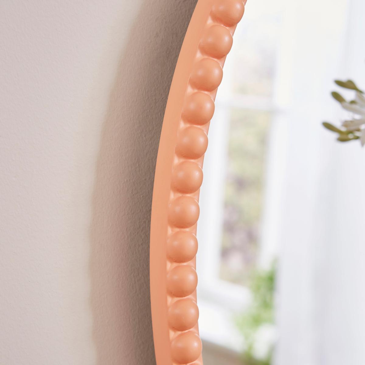 I’m a big fan of the apricot bobbin mirror for its playful beaded frame and soft pastel tone - it instantly lifts a neutral wall without overwhelming the space. It suits Scandi-inspired hallways, eclectic living rooms or even a kids’ bedroom, adding a subtle pop of colour and a sculptural touch. For styling, hang it above a slim console table with a couple of ceramics in muted hues and a trailing plant to pick up the rounded shapes. In a bathroom it works beautifully over a floating vanity; in a bedroom, layer it with small framed prints to create an informal gallery feel.