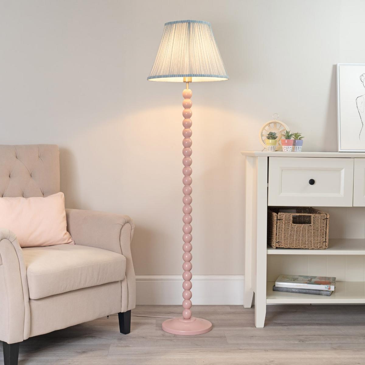 The Birdie Bobbin floor lamp in rose pink is the best way to add a little sweetness to your style. Soften up your interiors with a style so versatile you could have one in every room, from the nursery to the dining room. It is paired with a tapered fabric pleated lampshade.