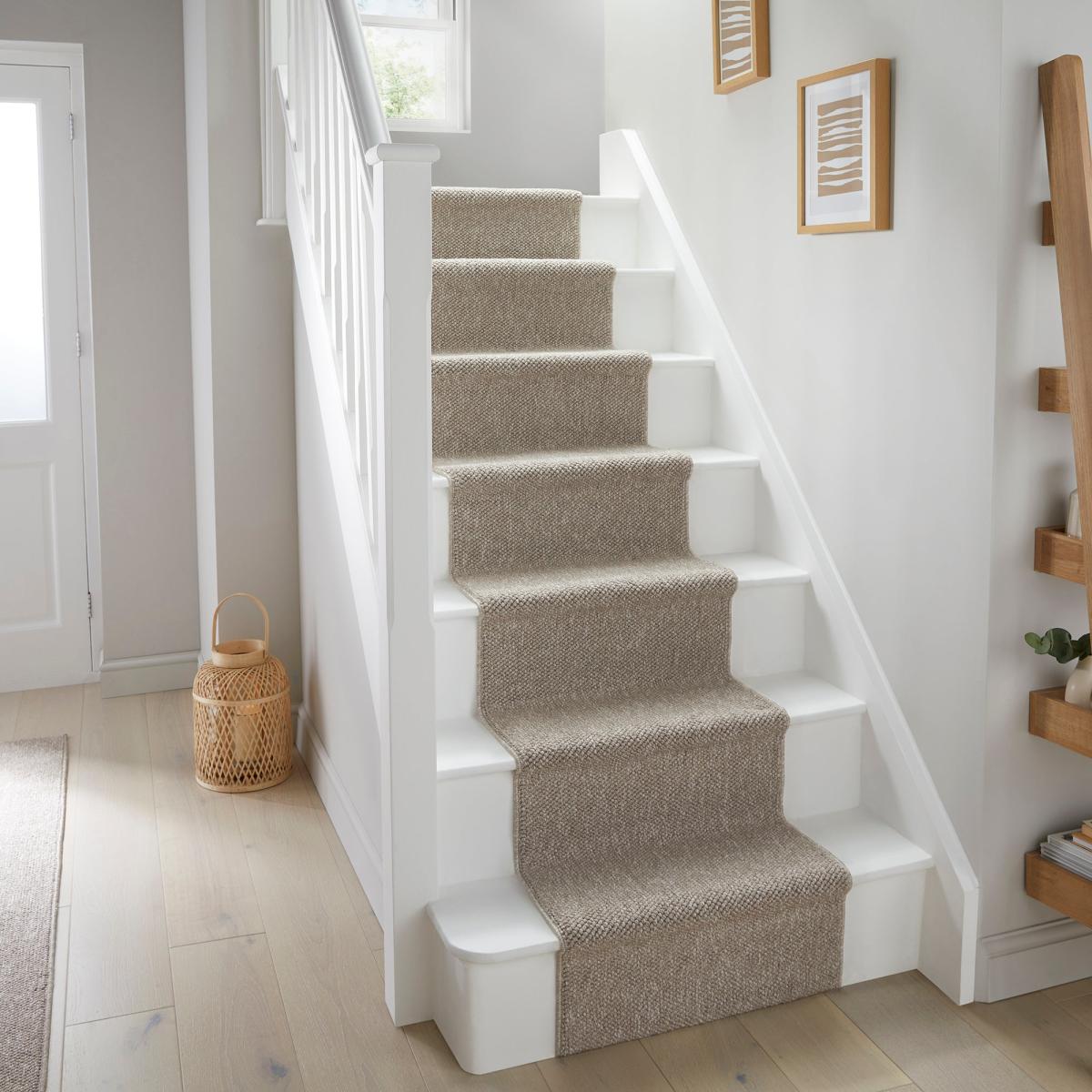 I love how the Bobble carpet stair runner adds a neutral yet textured element to the staircase, making it both stylish and practical. It’s perfect for creating a cosy feel while helping to reduce noise and provide grip, great for family homes or high-traffic areas. This runner works well in contemporary, Scandi, or even traditional interiors, especially when paired with light or neutral tones for a clean look, as shown in the image. For styling tips, consider balancing the natural tone with complementary colours or accessories, like cushions or artwork, to add warmth. Also, ensure it’s securely fitted to avoid slipping, and choose a length that lightly overlaps each stair for safety and visual appeal.