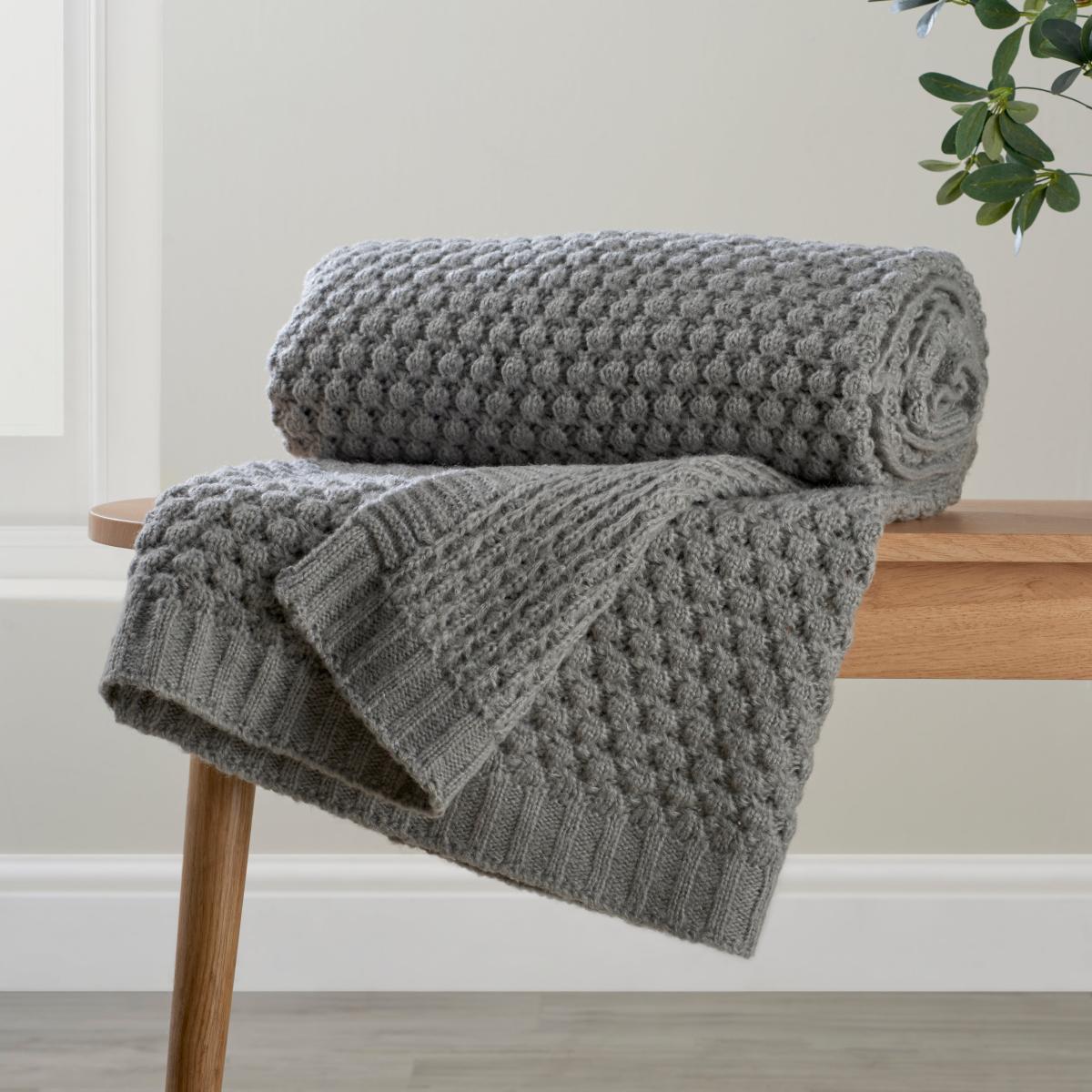 Bobble Knit 130x180cm Throw Grey Grey
