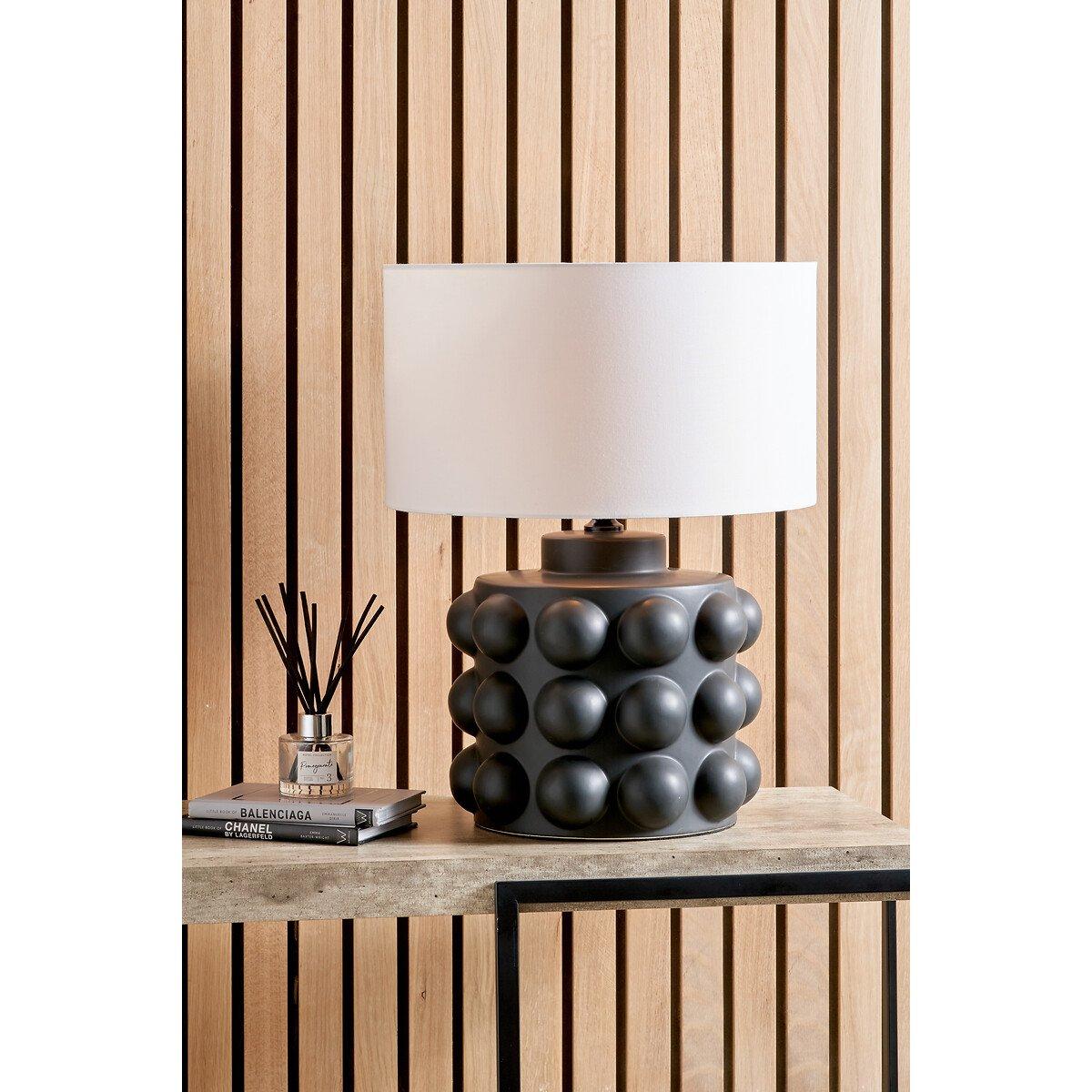This statement piece, crafted in ceramic in a bold black hue, effortlessly enhances any living space. The eye-catching bobbles ensure that this table lamp will be the focal point in your living space, adding a fun and tactile statement. Personalise the stylish table lamp base with one of our stunning lampshades. Recommended lampshade size 40cm diameter. Product Dimensions: 26 x 26 x 35cm. Composition- Ceramic. This product will be dispatched by one of our trusted suppliers. You’ll be contacted by their selected courier about your delivery.