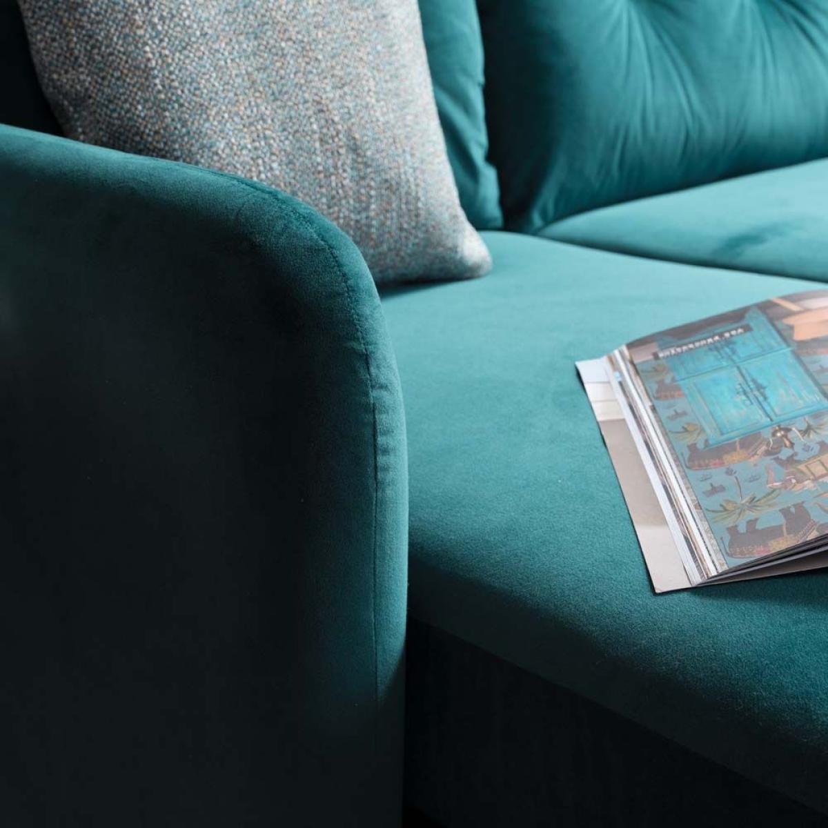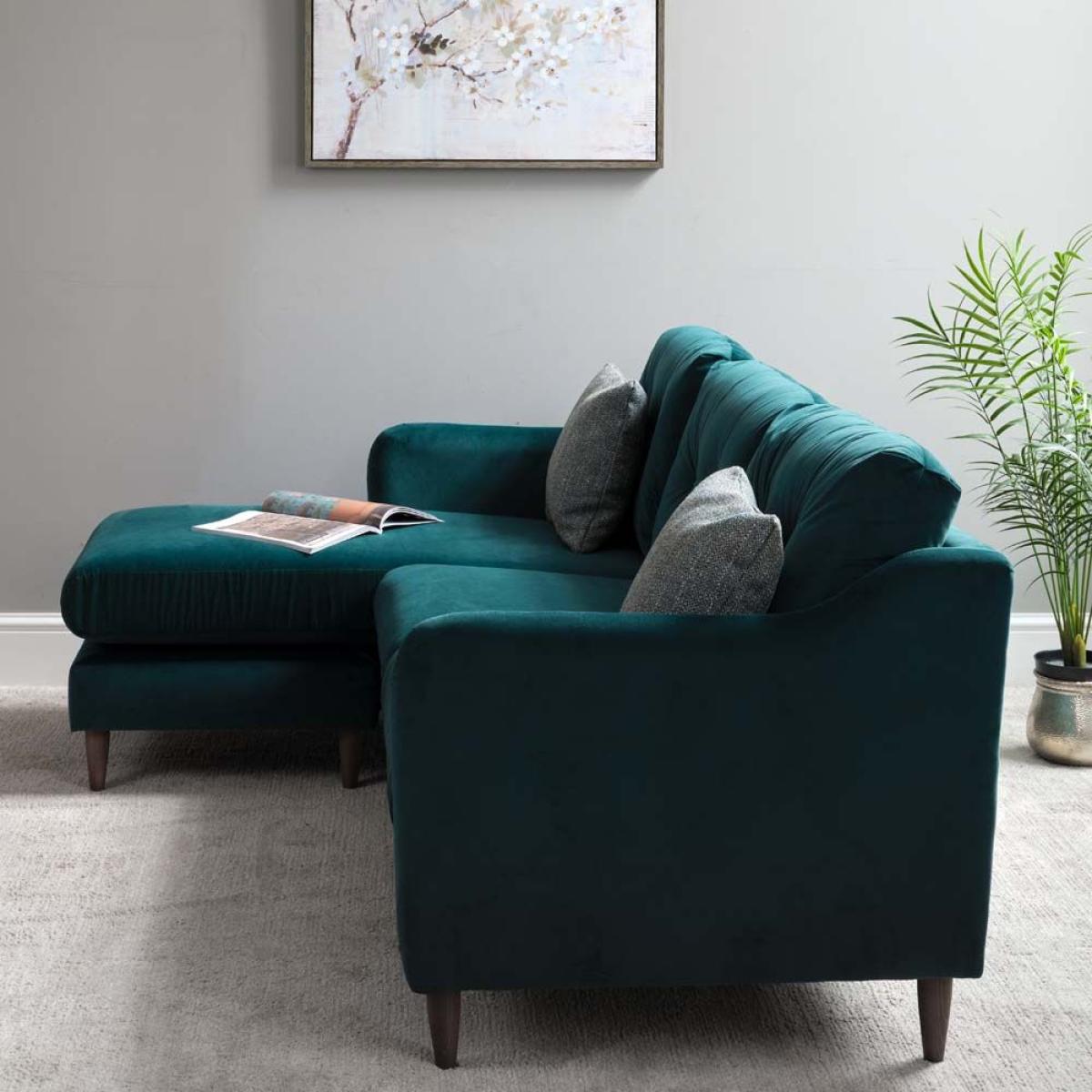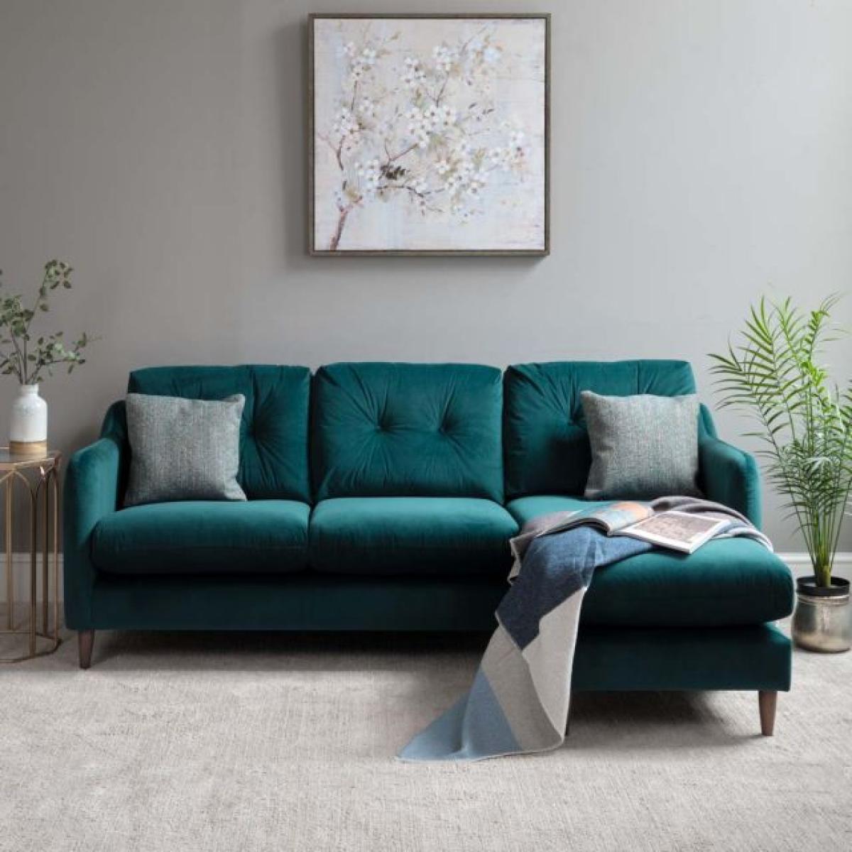 The Bobby Corner Sofa is perfect for getting cosy with your feet up and would be an excellent addition to any home. In a beautiful sumptuous velvet and with stunning curved armrests give this corner sofa a modern twist, however the button back cushion detailing offer a traditional nod to allow this sofa to suit many home styles. Dimensions: W204cm x H73cm x D86cm, Chaise Depth: 122cm, Seat height: 48cm. Detached run up stool can be easily switched to have the chaise either left or right hand side. Solid hardwood legs with a vintage stain Simple self assembly