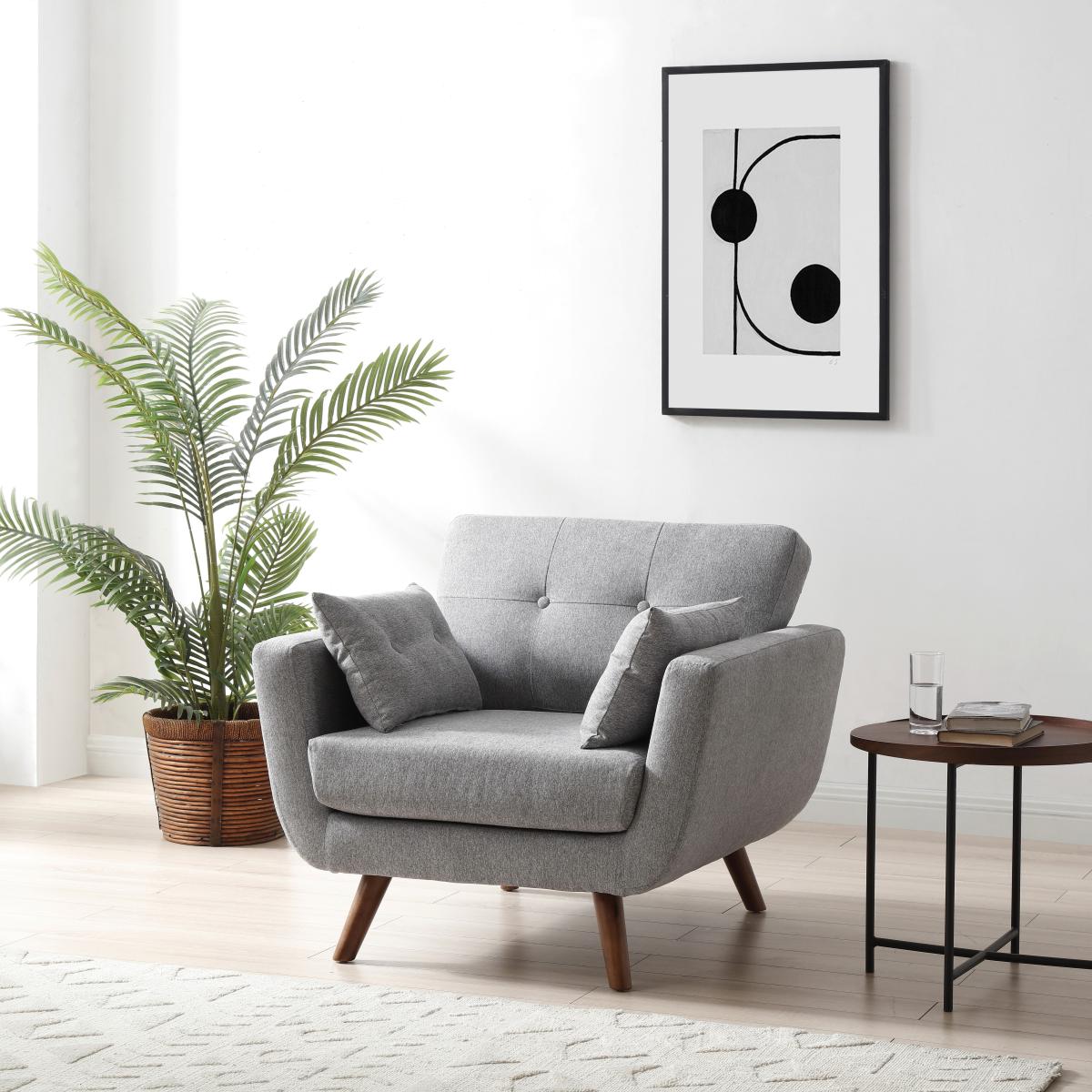 Part of the Bobby range, this chair is available in a contemporary grey colourway. Boasting button back detailing for a sophisticated edge and two waist cushions, this chair is perfect for adding a sophisticated edge to your décor.