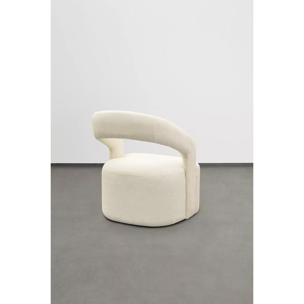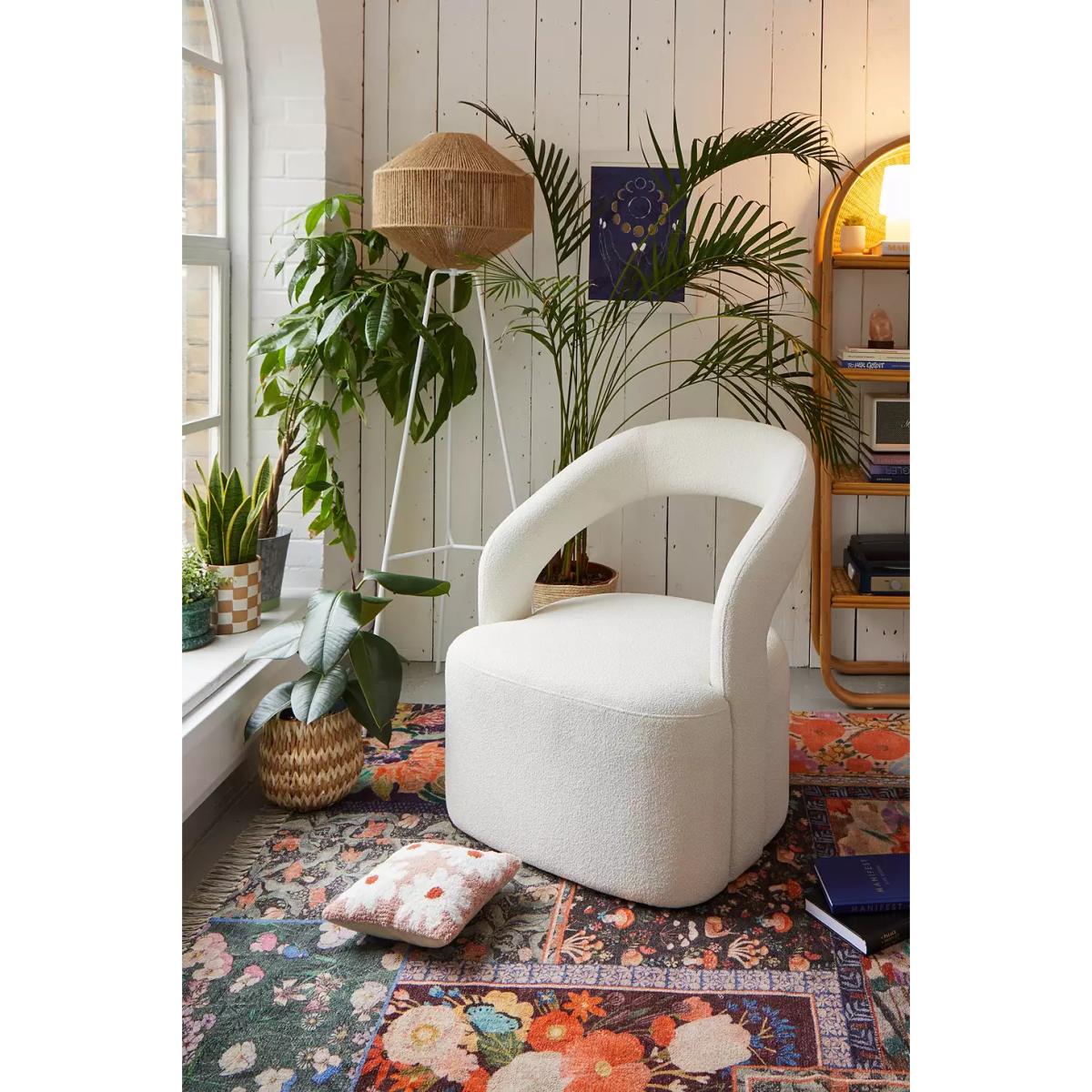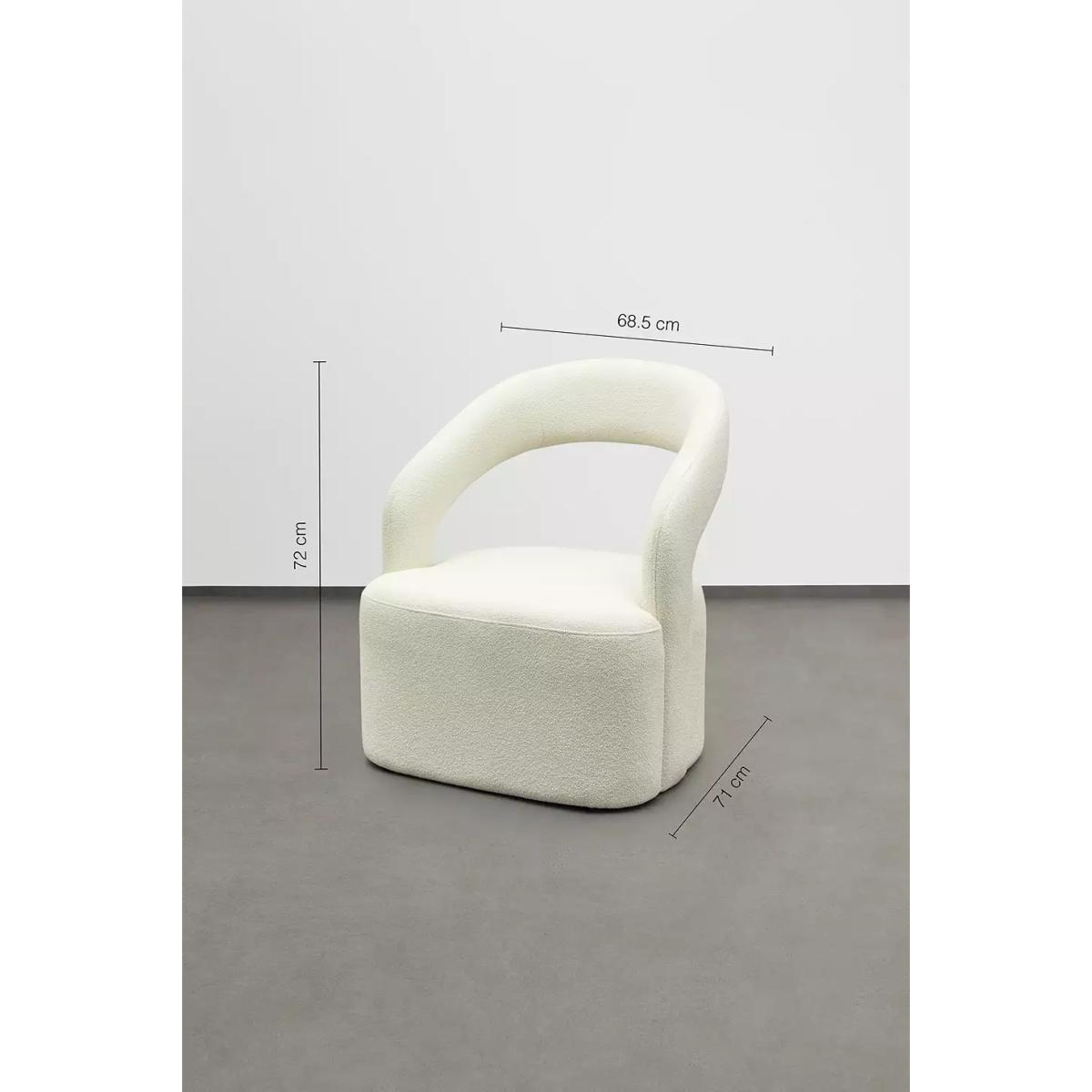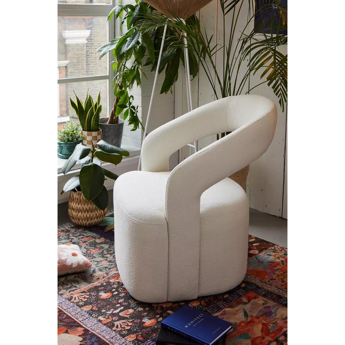 Modern art meets trending furniture piece in the Bobby armchair. Features a curved silhouette with a large cut-out back and a deep, plush cushioned chair. Finished with a solid base silhouette and no space underneath, built around a lightweight eucalyptus frame. *Online return only. This item cannot be returned instore. Please note furniture items currently cannot be shipped to Northern Ireland or The Republic of Ireland. Delivery of large furniture items may take 1-2 weeks and are therefore not eligible for Next Day Delivery.* **Content + Care** \- Textile, Eucalyptus wood \- Spot clean **Size** \- Product dimensions: 68.5cm x 71cm x 72cm \- Shipping container dimensions: 70.5cm x 77cm x 84cm
