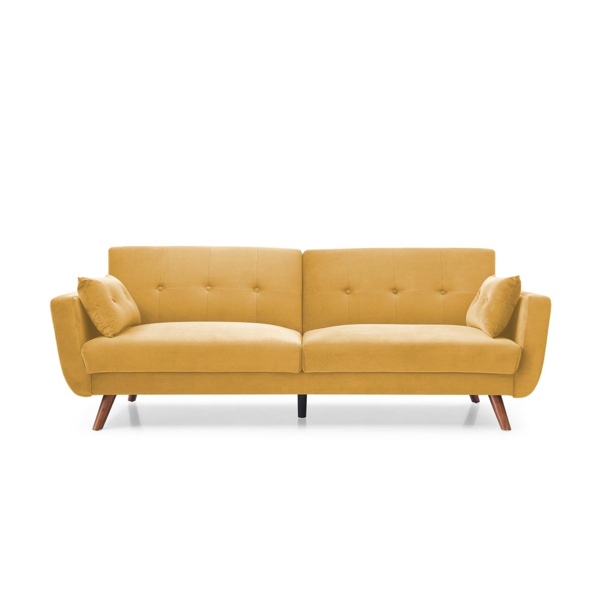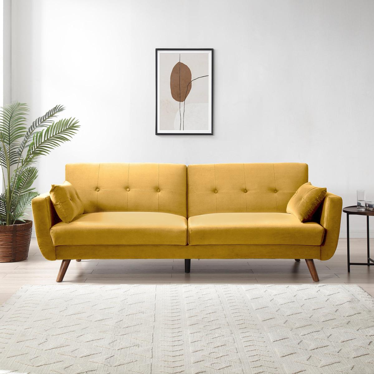 * Contemporary Design* Stylish & Practical* Click-Clack Mechanism* 2 x Waist Cushions Included Elevate your living space with the exquisite Bobby Velvet 3 Seater Sofa Bed—a harmonious blend of practicality and style. As practical as it is stylish, the Bobby Velvet 3 Seater Sofa Bed features an easy-to-use click clack mechanism: seamlessly transition from a comfortable seating arrangement to a spacious bed with a simple adjustment. Designed with your comfort in mind, the Bobby Velvet 3 Seater Sofa Bed comes with two waist cushions that add an extra layer of support and refinement; embrace the plushness of velvet upholstery as you sink into its inviting embrace, whilst the cushions provide the perfect balance of comfort and style. Crafted to perfection, this sofa bed boasts impeccable attention to detail: the high-quality materials and sturdy construction ensure durability, making it a reliable companion for years to come. With its timeless design and luxurious velvet finish, the Bobby Velvet 3 Seater Sofa Bed effortlessly complements a range of interior aesthetics, adding a touch of sophistication to your living space.