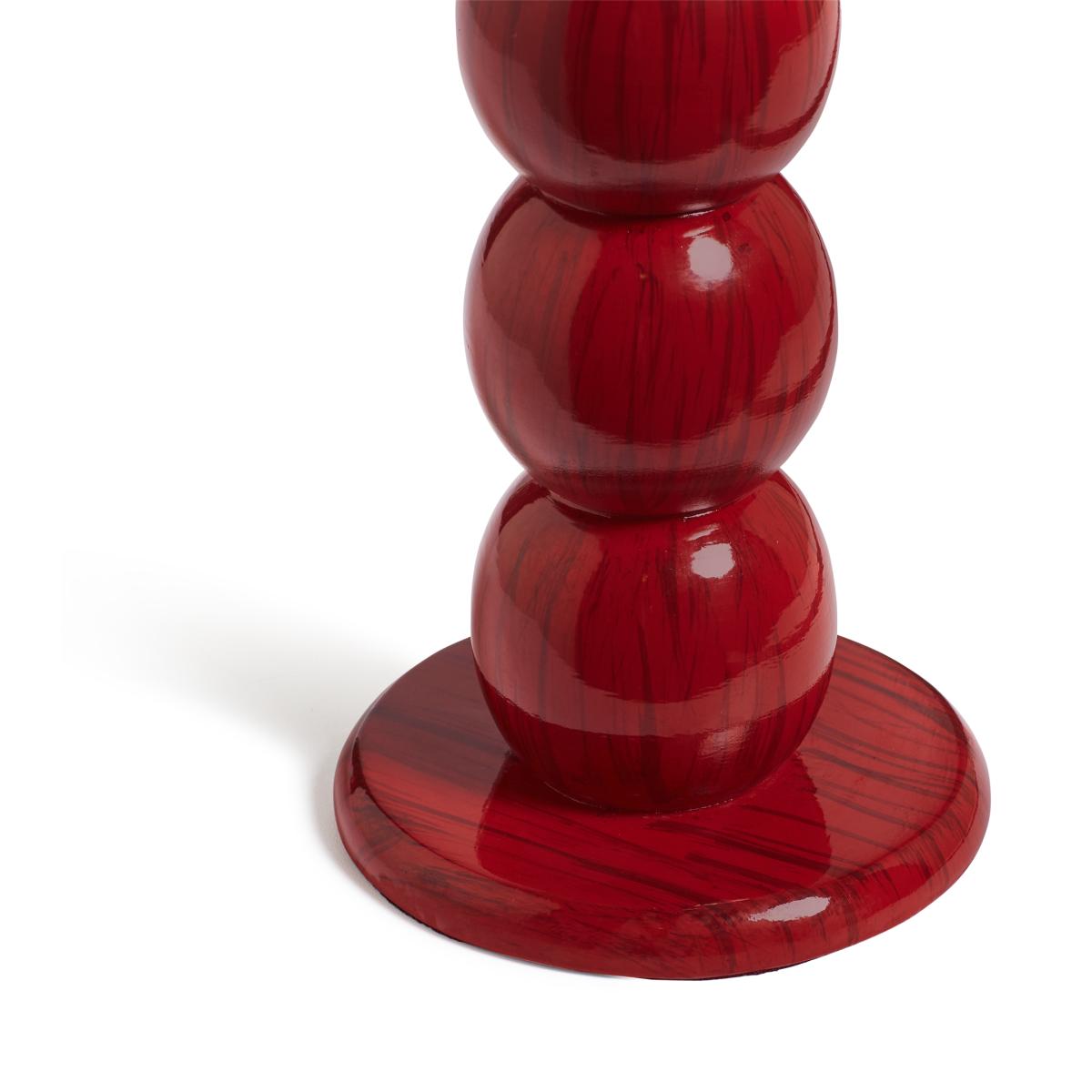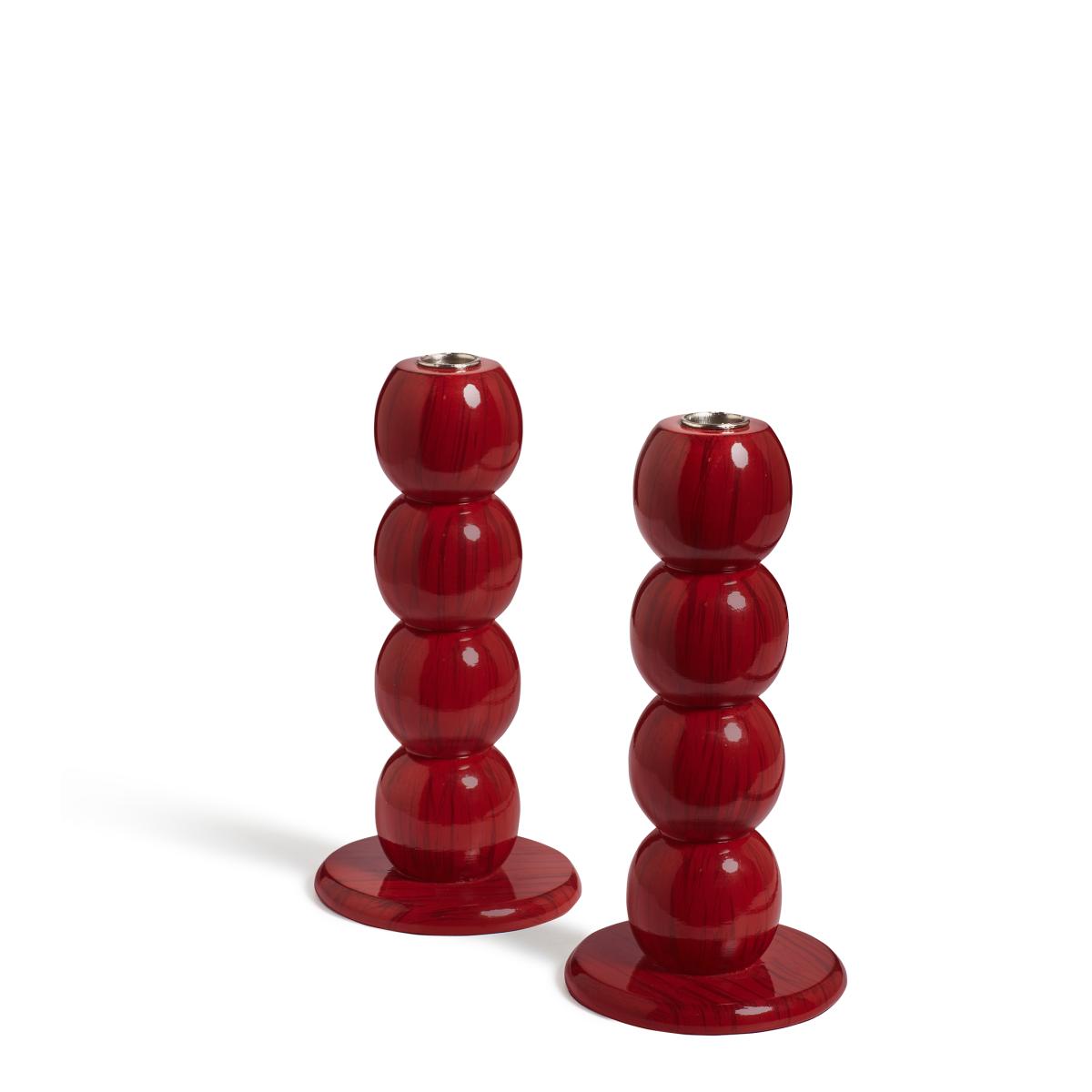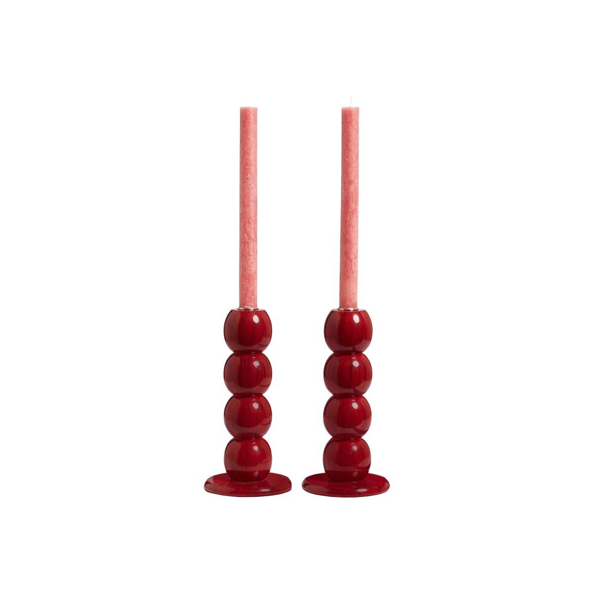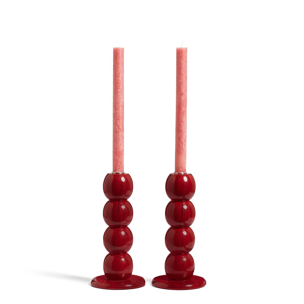 Hand carved from mango wood, these candle holders are inspired by the legs of bobbin furniture, with their pleasingly spherical forms. They are hand painted a deep red which lends them natural brush strokes for texture and variation, then coated in a gloss for a high-shine finish that will reflect the light of your tapered candles’ flickering flames. Pair with our other bobbin-inspired designs for a cohesive look, or let them standalone for a statement on your dining table.