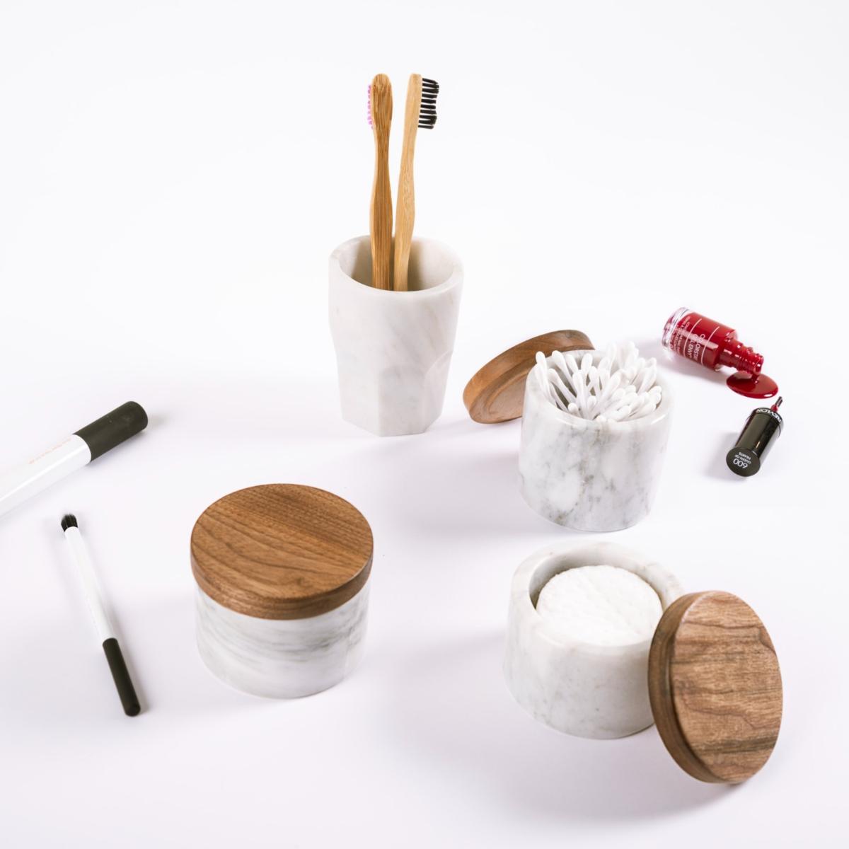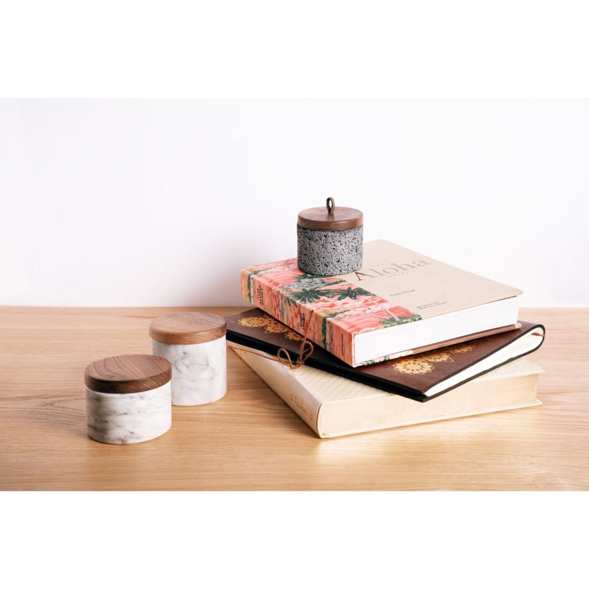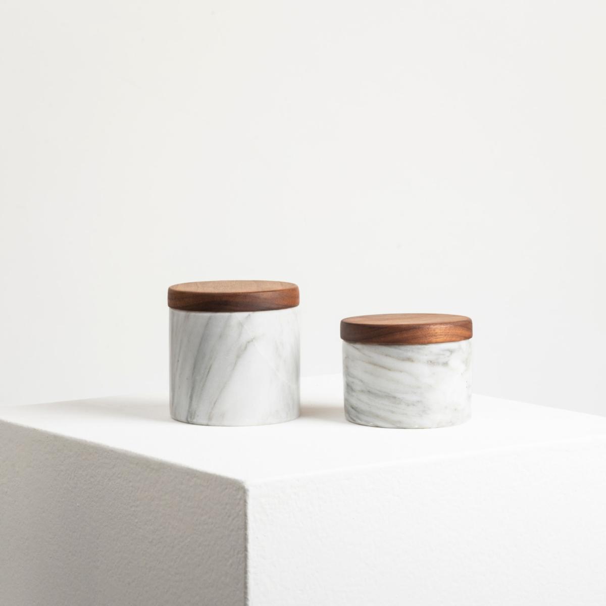 White Bego marble hand carved containers with a walnut top. Perfect for those little things. Use it when removing make-up, or keep things you like near, like sweets, use it for your stationery in your workspace, leave your rings handy on your dressing table, keep fresh spices at your kitchen. There will always be a special use for these marble jar. Available in two heights.