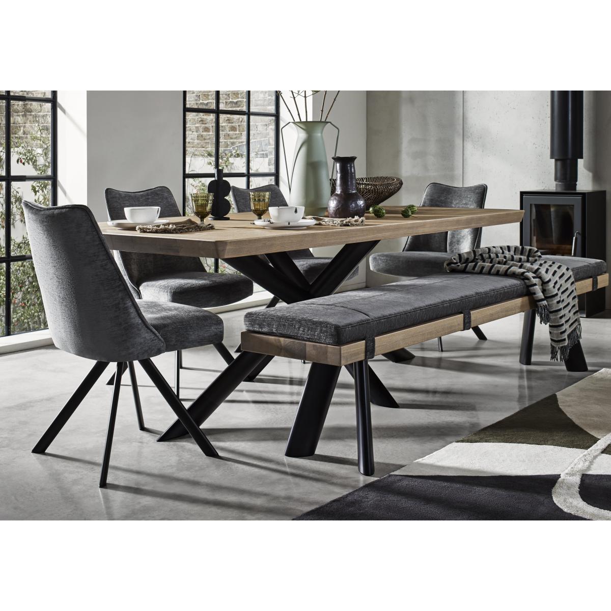 By definition, industrial style is bold, rustic and natural. But what if it was all that – and sophisticated too? The Bodahl Athena range combines traditional industrial design with gentle curves and elegant angles. The collection’s solid oak dining table has a metal star-shaped base with slender legs, and its edge profiles include a gently rounded, Scandi-inspired soft edge. This table is also very customisable –choose from nine beautiful colour finishes for the top and three different edge styles, and it comes in nine sizes. Pair your Athena dining table with dining benches or swivel dining chairs from the range and dine in chic industrial style. The Bodahl Athena collection is handcrafted exclusively for Furniture Village.