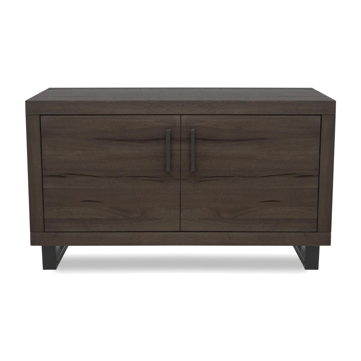 The Terra range combines the warmth of rustic style with the urban edge of industrial design – and it does it beautifully. Expertly handcrafted from solid natural oak, every piece boasts impeccable craftsmanship with knots and markings on full display. Its distinctive black metal legs and natural warmth make this a statement range for design-led interiors and relaxed dining spaces alike. And with a handcrafted padded bench or soft, faux leather cantilevered chairs, there’s plenty of comfy perches to choose from. Simply sit back, tuck in and enjoy your meal in comfort. The Terra range is fully bespoke with a wide range of options for table top edges, thickness, size and colour, alongside several striking leg options. Create your unique design today. Enjoy bold industrial style in a more ergonomic format. This 2-door sideboard is beautifully crafted in oak and is part of our Bodahl Compact Terra range, sized for smaller rooms. Why you'll love it Here’s the perfect small-space, industrial-style 2-door sideboard. At last – a compact version of our popular Bodahl Terra range. Handcrafted in 100% solid oak in a choice of colours and finishes. A protective matt lacquer makes this an enduring piece. Black metal U-shaped legs. Soft-closing cupboard doors. Only at Furniture Village. This 2-door sideboard is part of the Bodahl Compact Terra collection. What you need to know 2 adjustable shelves. Made of solid oak and metal. Oak top may display knots, saw marks and variations in tone and texture. Metal legs are finished by hand and may show marks. Use a clean, damp cloth to clean the oak top.